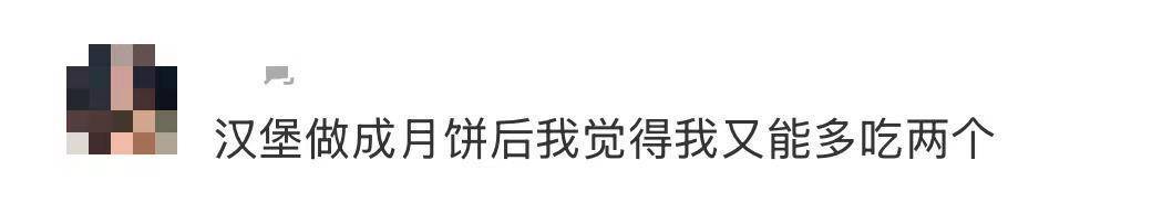 更有“脑洞大开”的网友,将一个圆滚滚的小汉堡塞入月饼模具,压出了一个和传统月饼外形几乎一模一样的“汉堡月饼”。