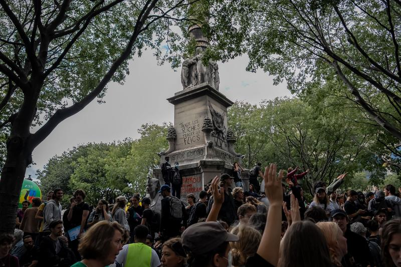 9月10日,人们在法国巴黎夏特莱广场附近参加游行示威。新华社发(奥雷利安·莫里萨尔摄)