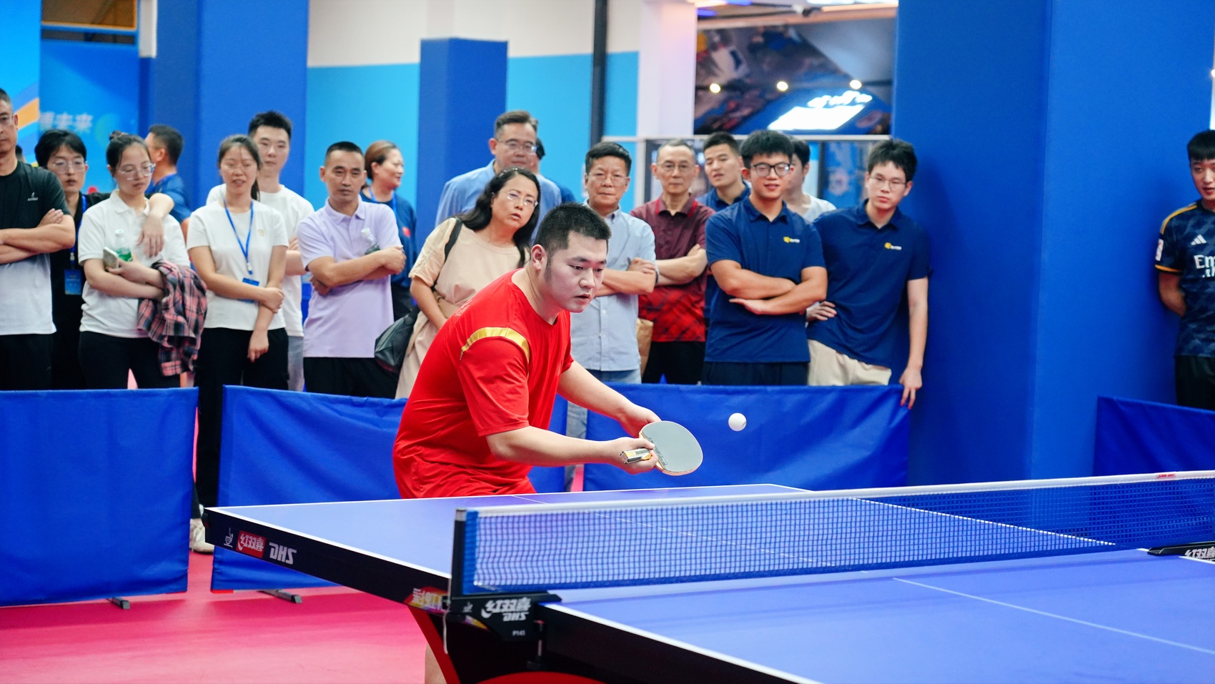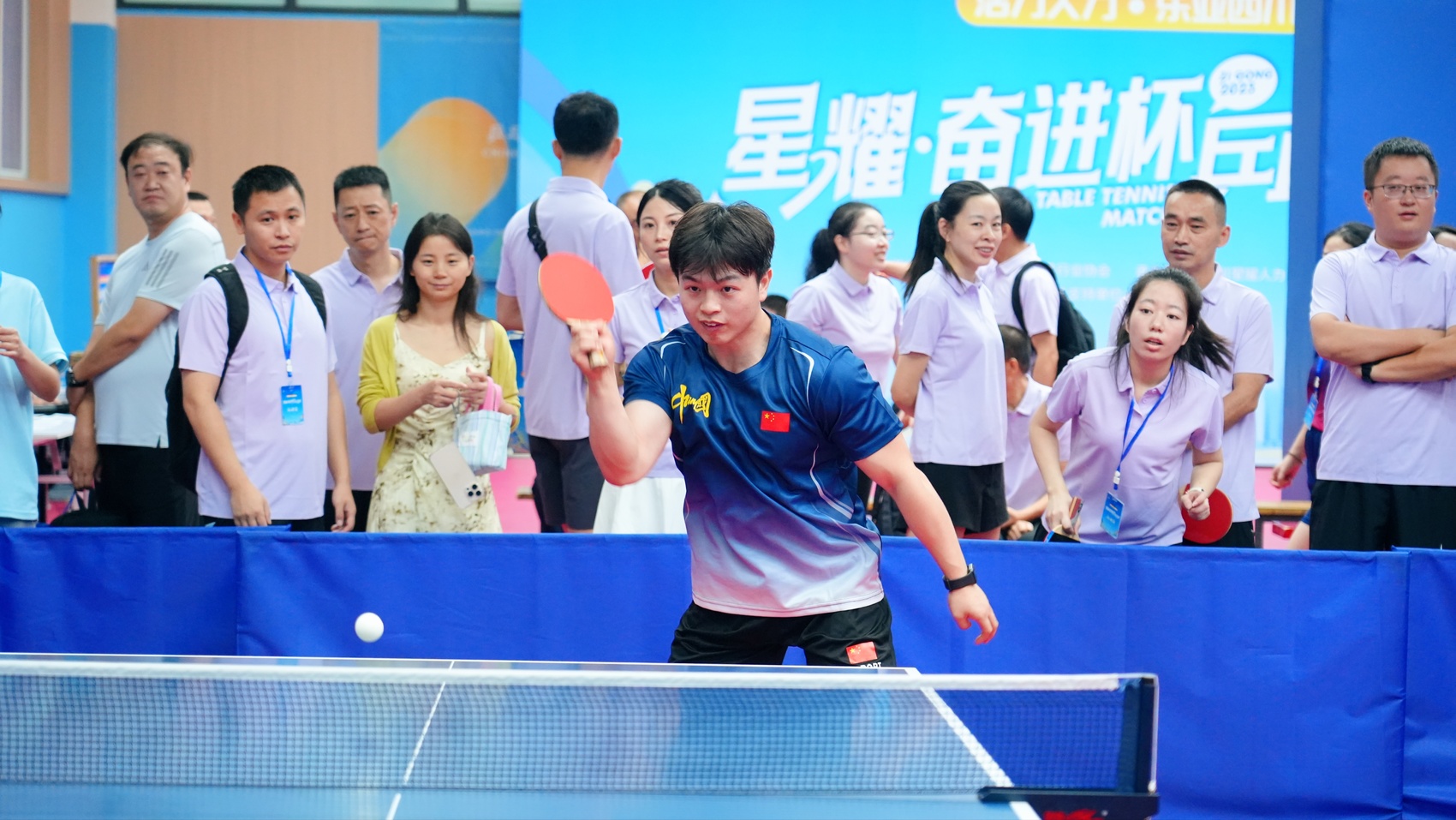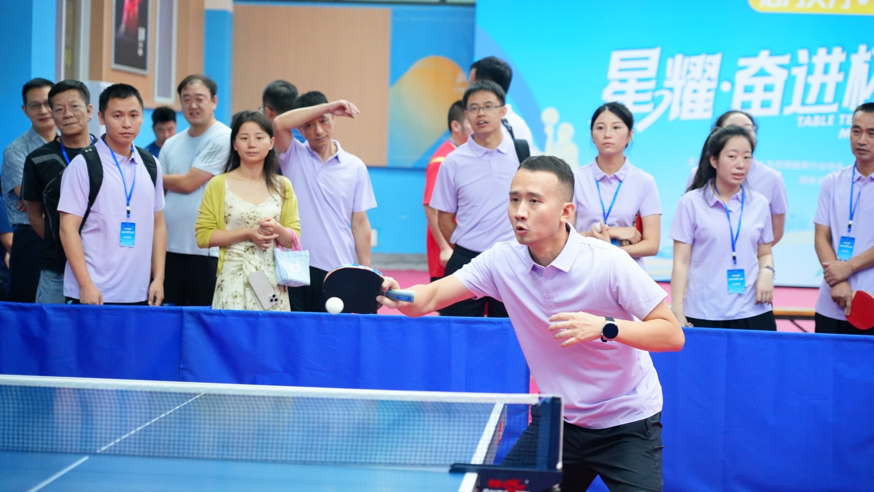 走进比赛场馆,奋勇拼搏的氛围扑面而来。乒乓球在球台上来回穿梭,划出一道道弧线;运动员们眼神专注,削球、推挡、扣杀,每一个动作都彰显“国球”韵味;场边啦啦队呐喊声、欢呼声与乒乓球撞击球台的 “砰砰” 声交织在一起,将赛场气氛推向高潮。