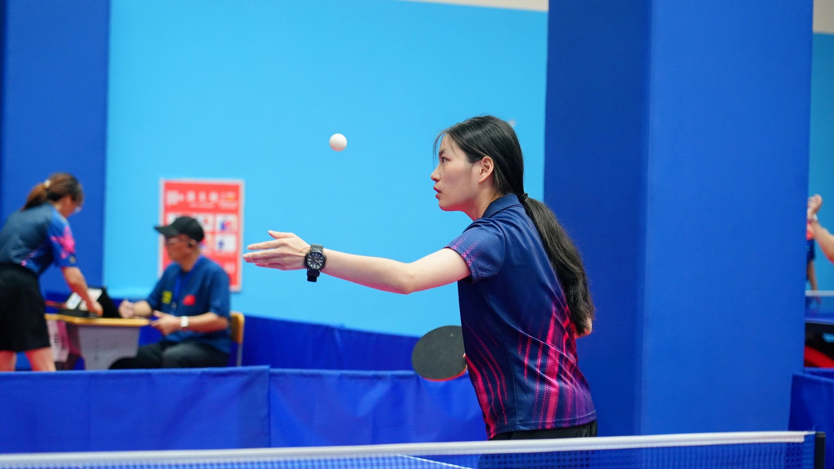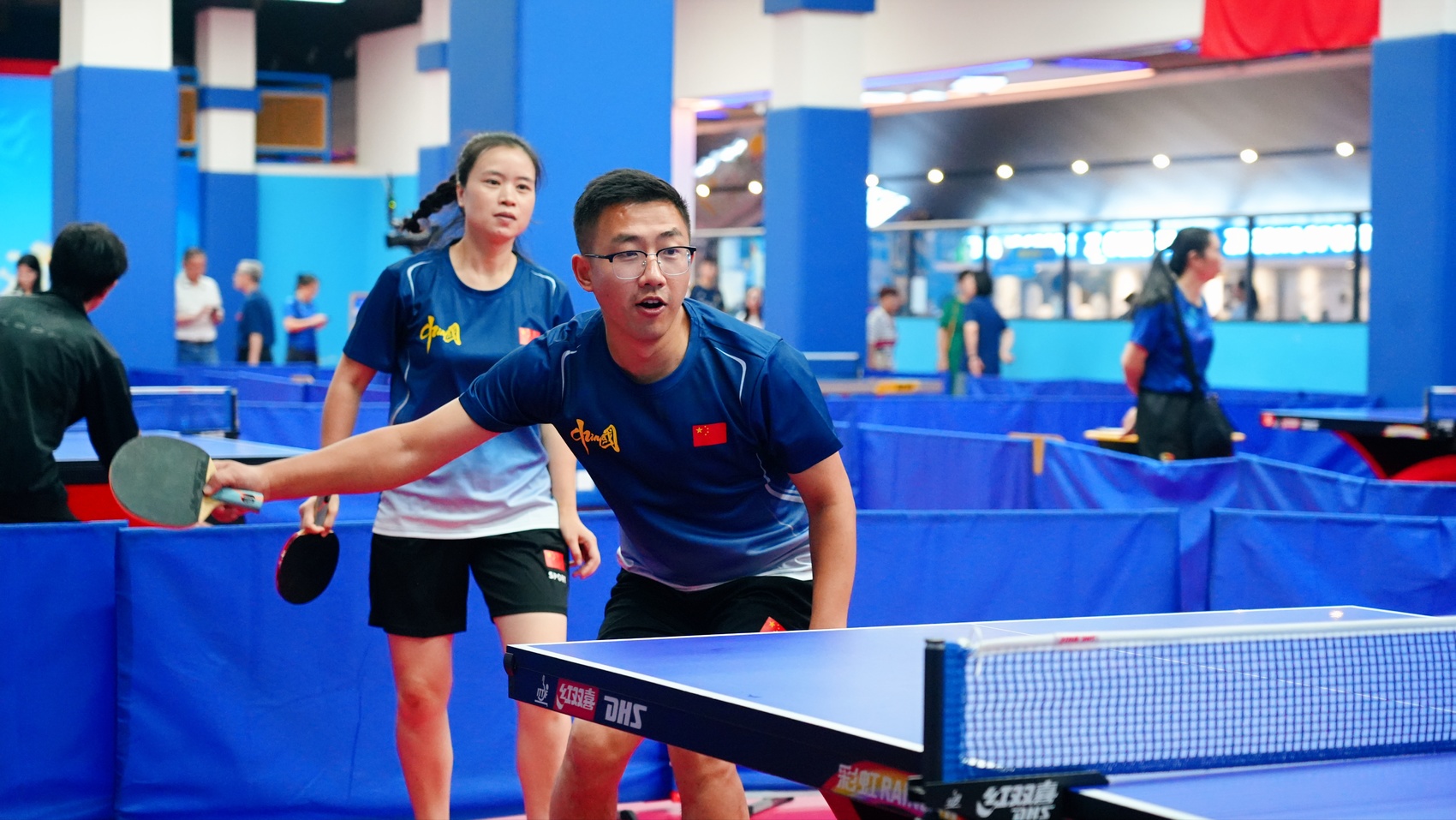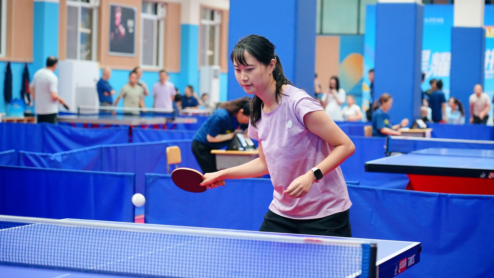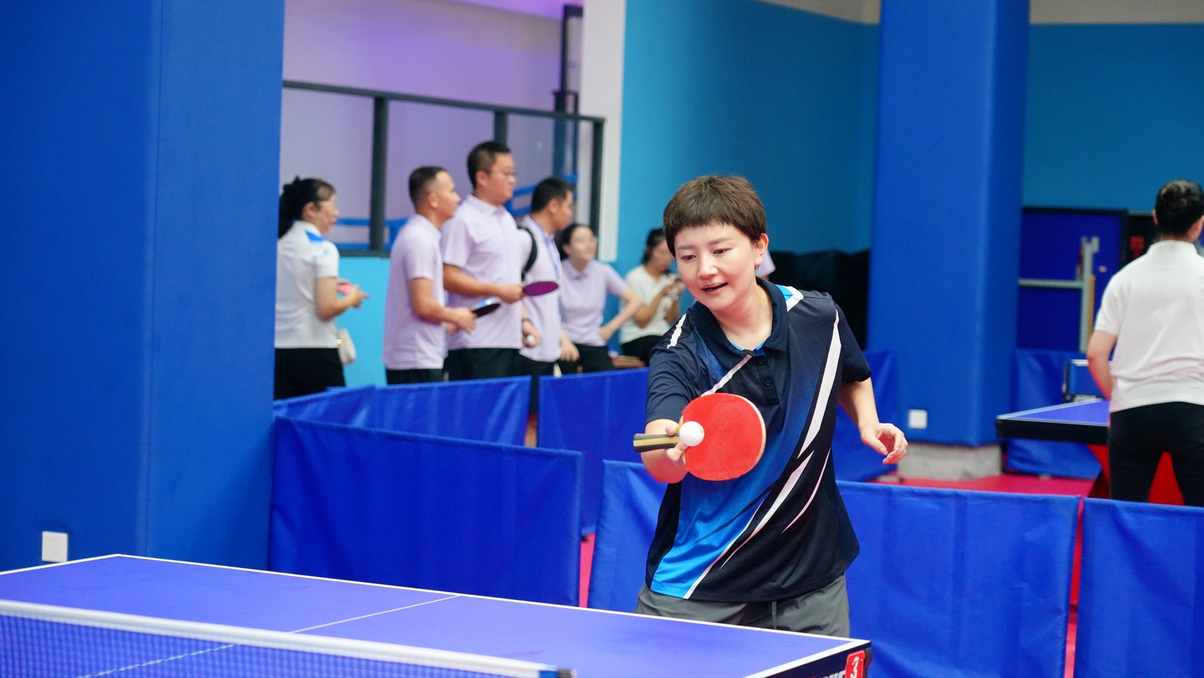 走进比赛场馆,奋勇拼搏的氛围扑面而来。乒乓球在球台上来回穿梭,划出一道道弧线;运动员们眼神专注,削球、推挡、扣杀,每一个动作都彰显“国球”韵味;场边啦啦队呐喊声、欢呼声与乒乓球撞击球台的 “砰砰” 声交织在一起,将赛场气氛推向高潮。