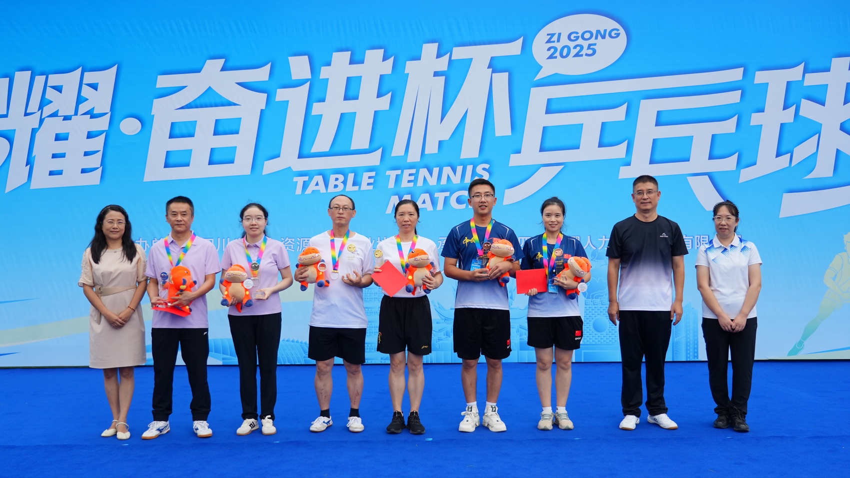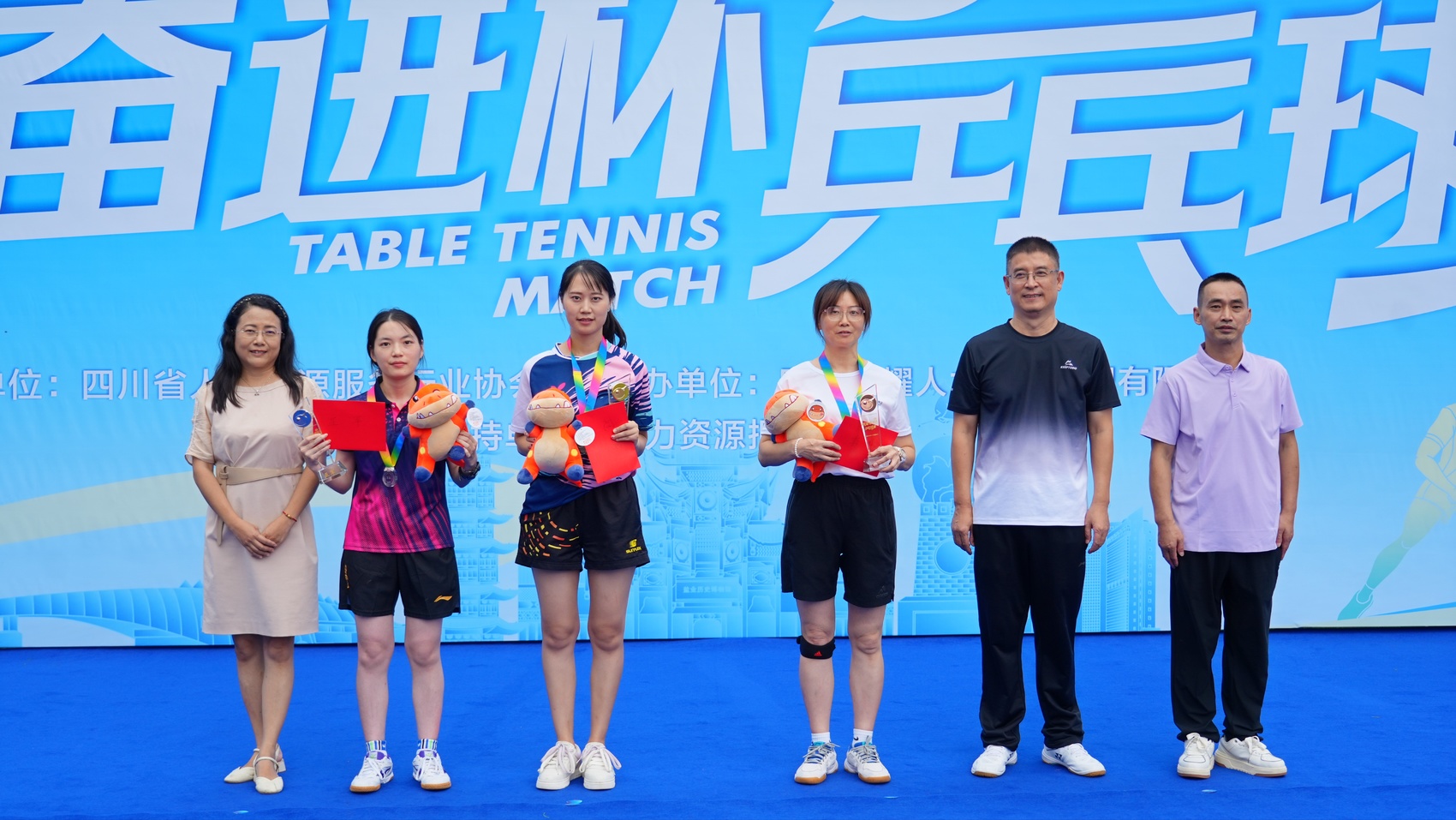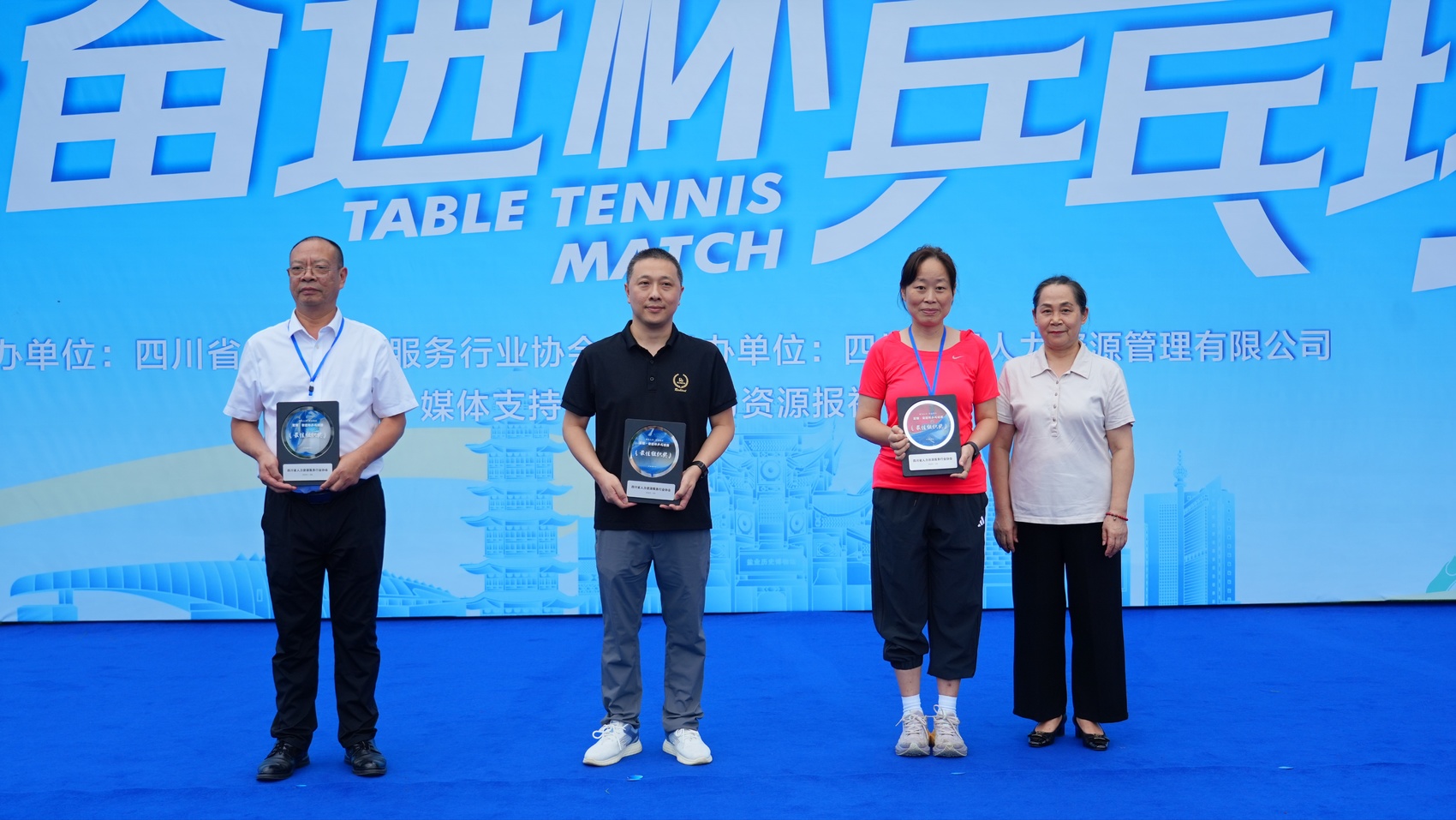 经过激烈角逐,乒乓球比赛圆满落幕。富顺汇川人才发展集团有限公司王奇、徐仙桃获得男子双打组冠军,成都信息工程大学田晓旭、田晓膺获得女子双打组冠军,富顺汇川人才发展集团有限公司邱彬、余丽获得男女混双组冠军。中融安保集团有限责任公司陈杨、四川洪晟兴贸智慧科技有限公司彭岚分别获得男子、女子单打冠军。