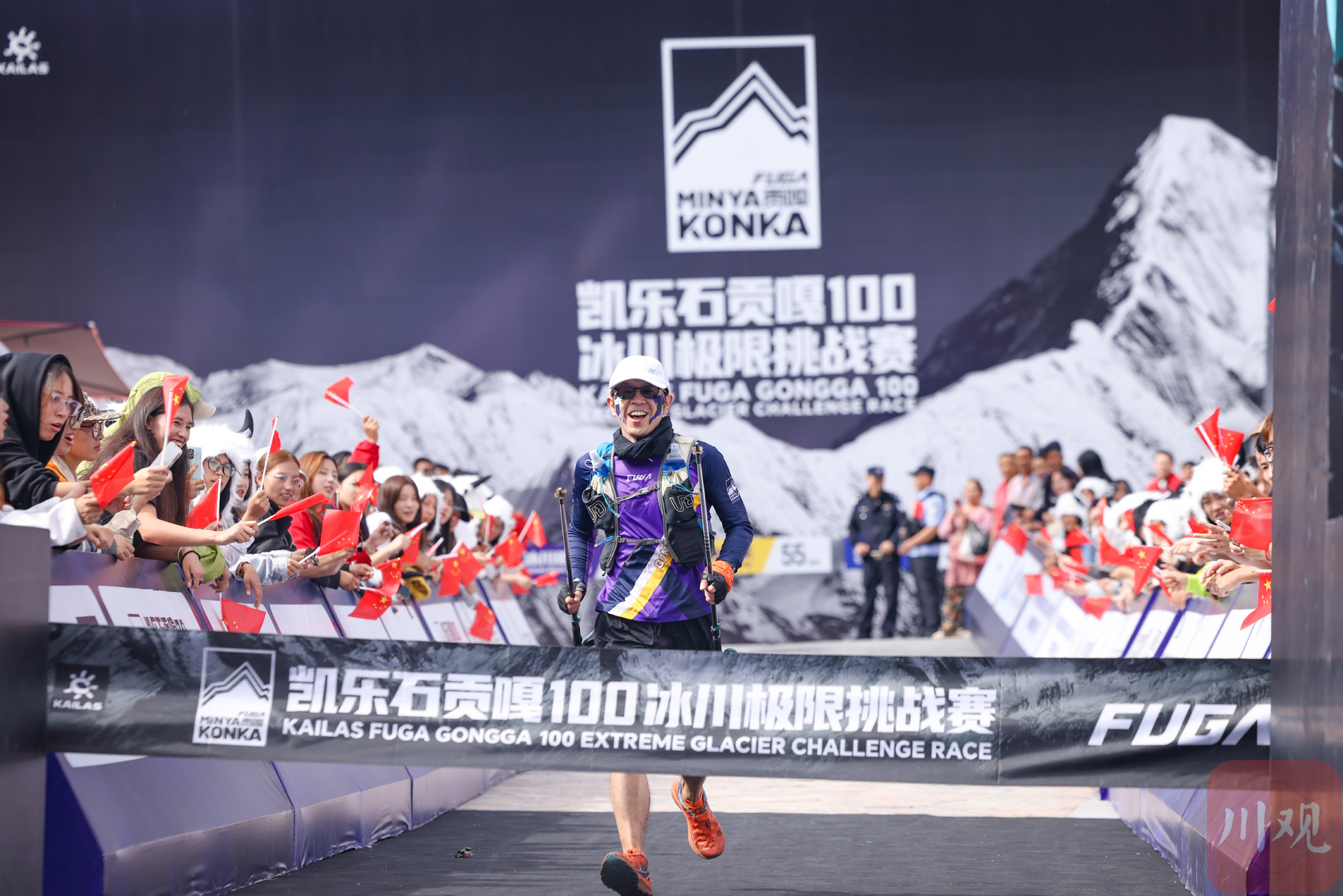 海螺沟游客中心终点区,选手面带微笑冲过终点线。