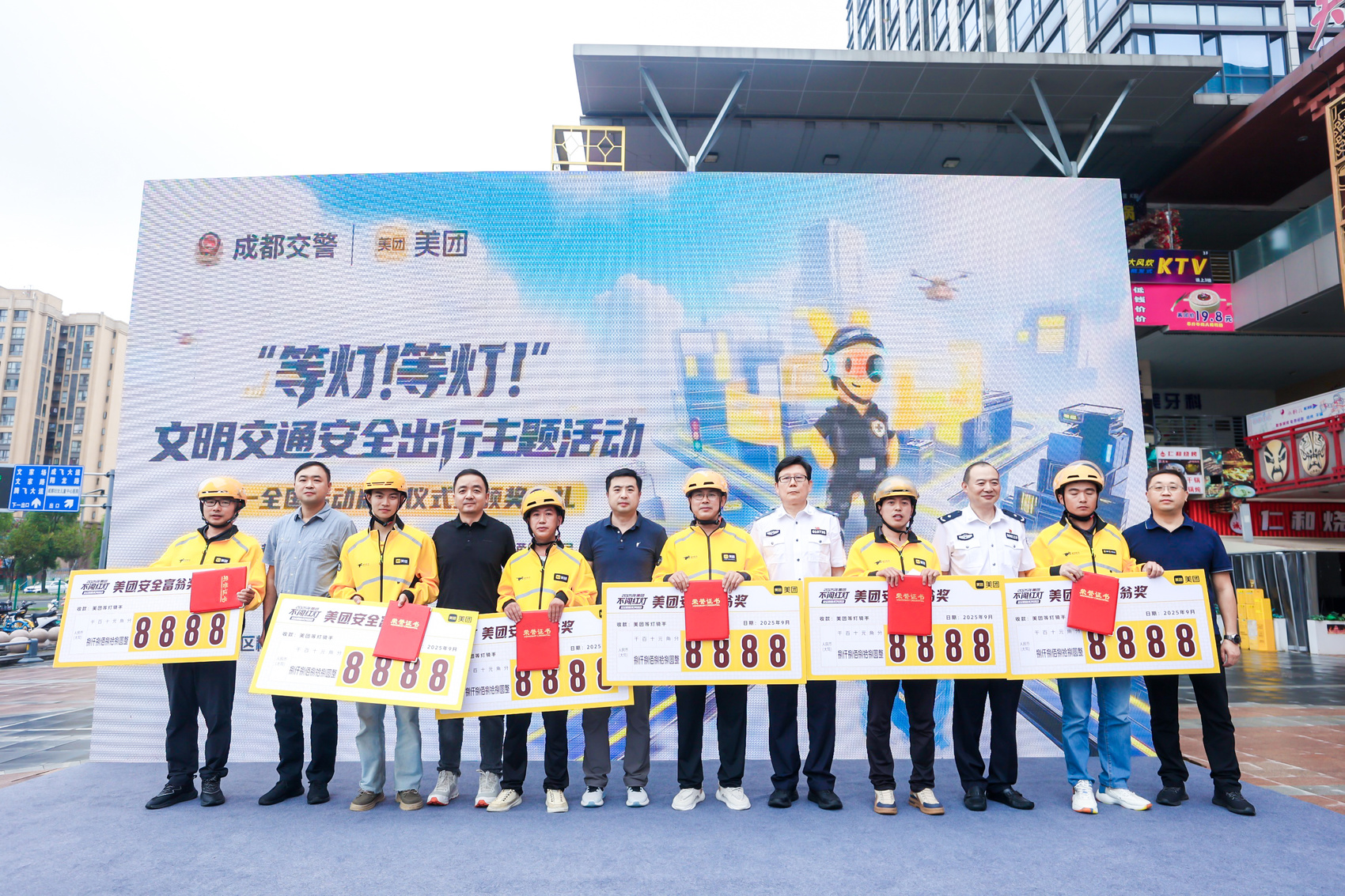 9月28日,美团“等灯,等灯!”激励活动——十一全国活动启动仪式暨颁奖典礼在成都举行,对长期遵守交通规则的榜样骑手进行表彰。