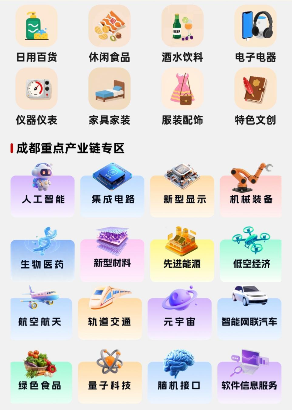 “核心目标是实现‘天涯海角都能上、单位个人都能用、成都精品都能买’。”成都市经信局市新经济委相关负责人介绍,平台覆盖全球用户,国内海外均可便捷访问;无论是个人消费者、中小企业还是大型采购商,都能找到适配服务;平台涵盖消费名品与工业精品,精准满足多元需求。
