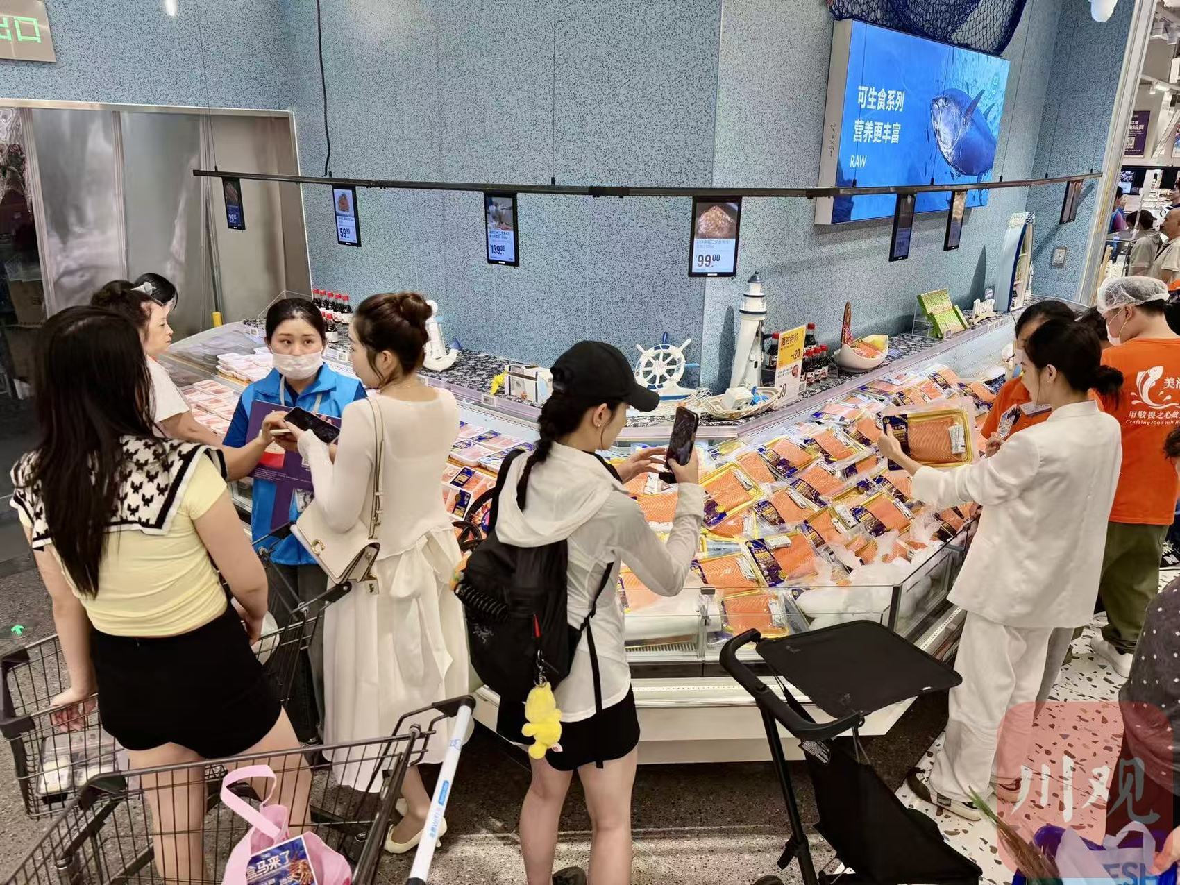 “我们希望通过供应链优化,让宜宾消费者不用花高价也能享受到全球各地的新鲜食材。”盒马宜宾天地店店长昭启表示,帝王蟹、东星斑、梭子蟹等高品质海鲜性价比突出,尤其是挪威三文鱼,通过挪威直飞航线,72小时便能端上宜宾市民餐桌,凸显了品质和价格优势。