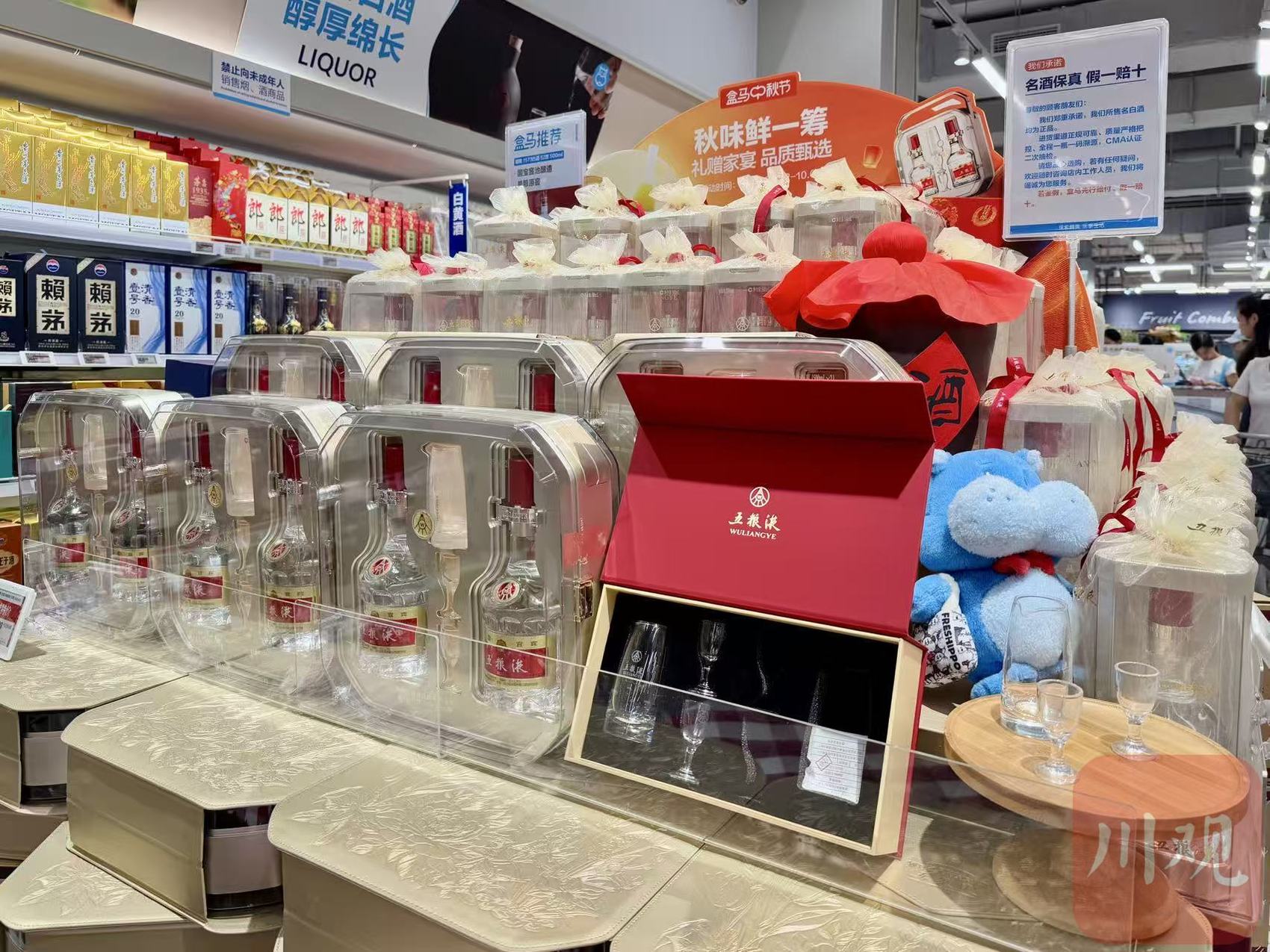 当天一早,面积3800平方米的门店内人头攒动,8000多种涵盖全球生鲜与本地特色的商品琳琅满目,吸引众多当地消费者前来采购和体验,还有多位市民举起手机、打开摄像头,直播首店开业的热闹现场,向网友分享家门口开了盒马线下门店的喜悦。宜宾当地代表性产品——五粮液也以专区形式进行陈列,呈现浓郁的本地特色。