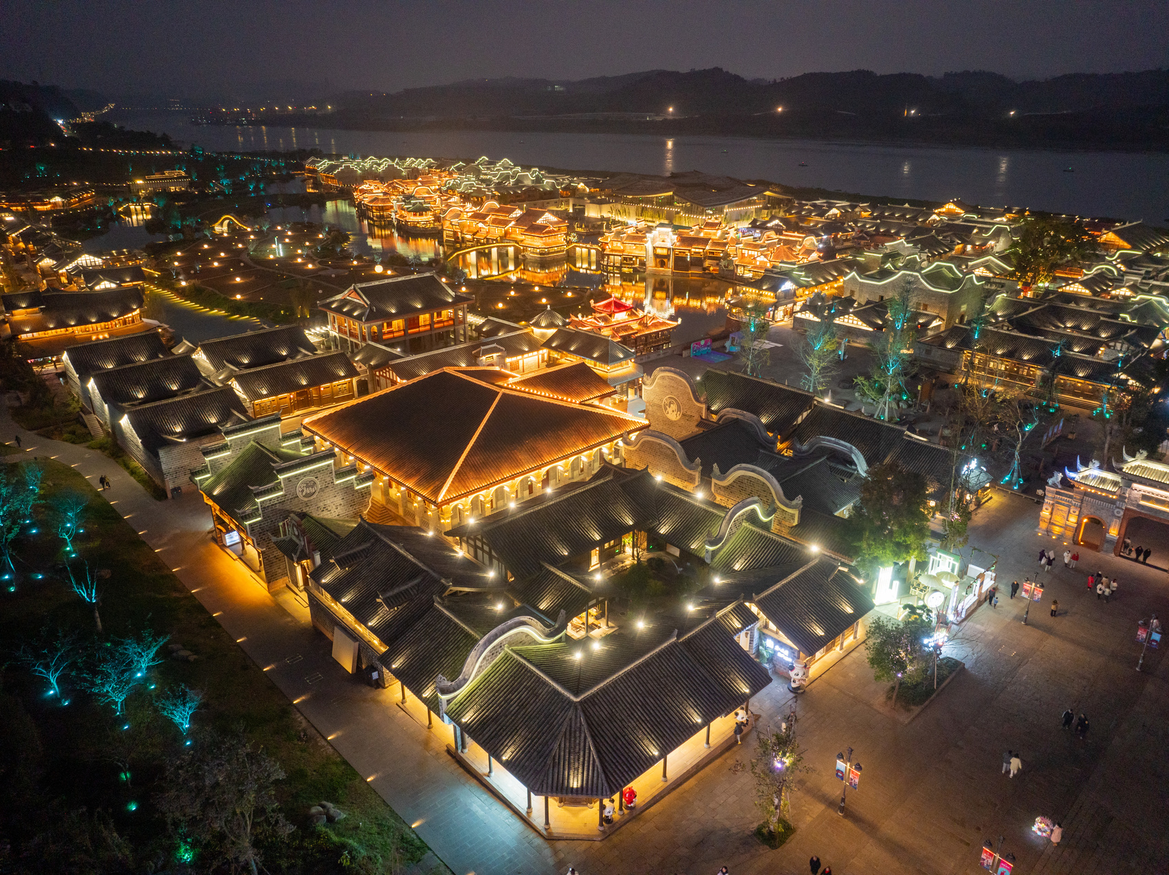 夜幕下的李庄古镇景区。 罗顺 摄