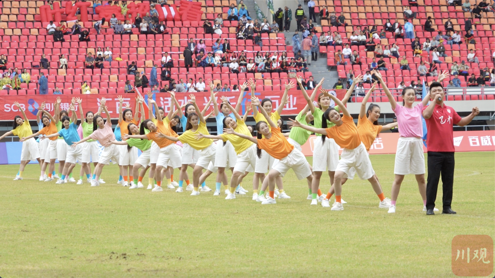 在嘉年华内,还安排了乐队驻唱,耳熟能详的歌曲让台下球迷积极跟唱,现场气氛热烈。在赛场内,巴中市还精心策划了歌舞表演《走巴山》、啦啦操《我们都是追梦人》、通江民歌《送红军》、四川车灯《打亲家》等文艺节目,赢得观众阵阵掌声。