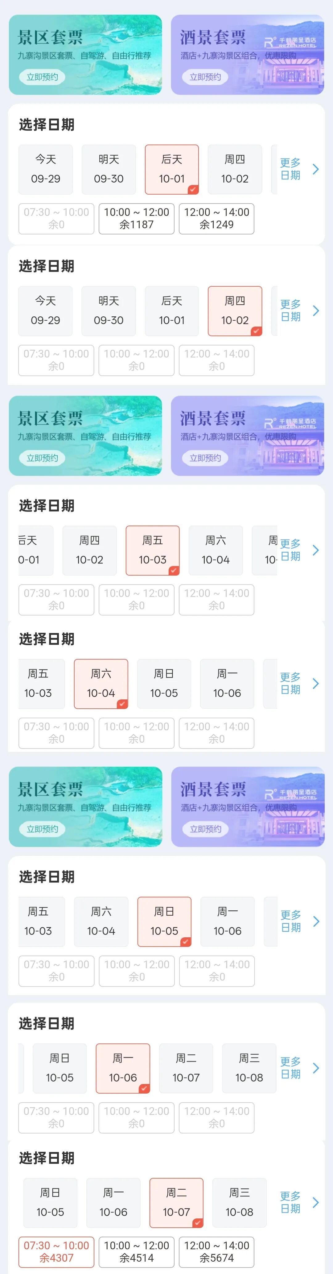 截至发稿时,九寨沟景区10月2日-7日全时段票售罄,10月1日部分时段、10月7日及以后还有余票。