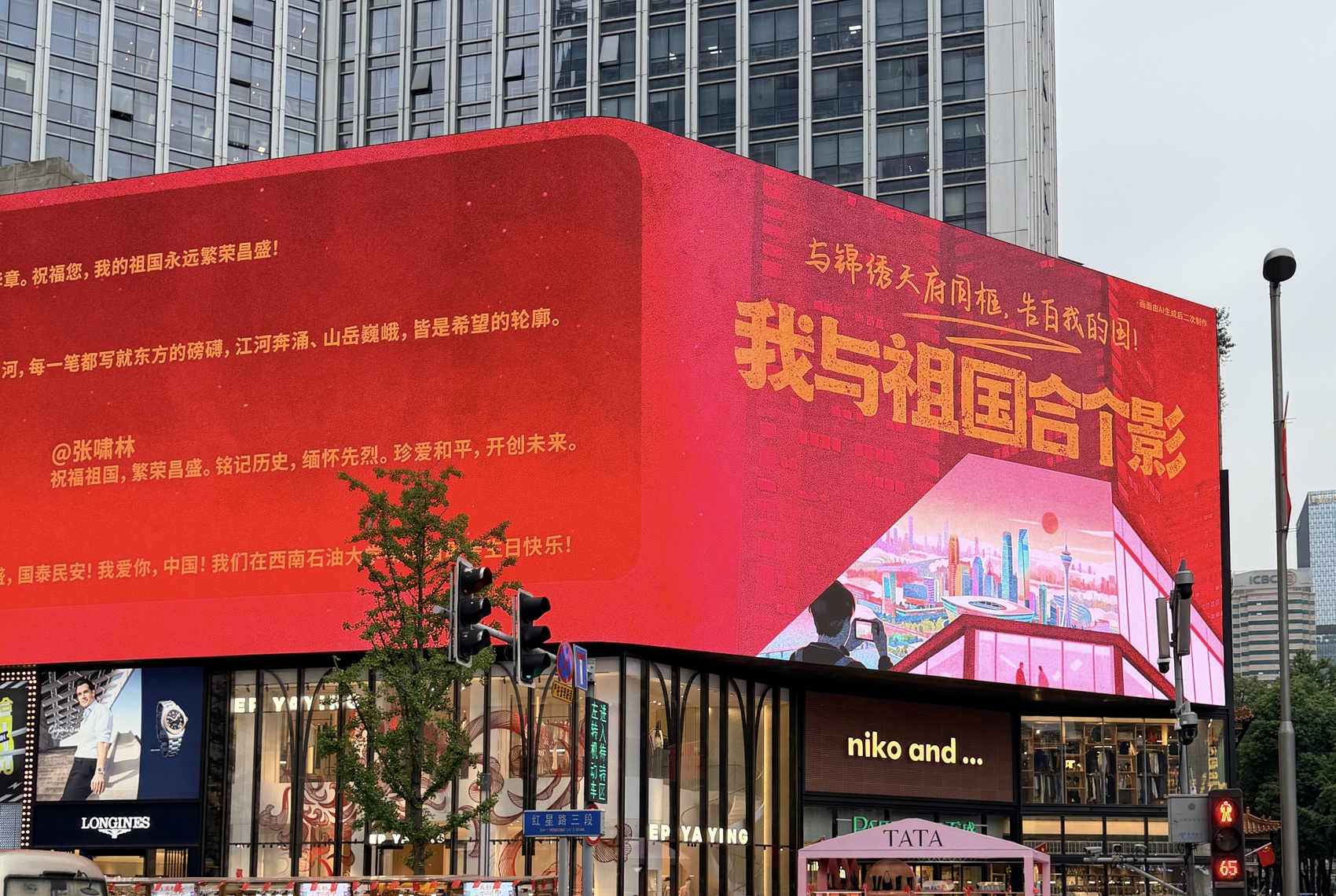 即日起至10月2日,川观新闻联合天府艺术巨幕(春熙路百盛)主办的“我与祖国合个影”国庆主题展播开启,欢迎你来打卡!在这片光影交织的祝福中留下你与热爱的同框瞬间,一起向祖国真情告白。