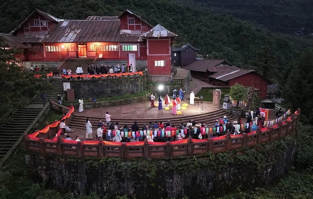 亮点:设置古风美食市集、主题演艺、趣味互动,以特色美食、非遗文化为主题,营造峨眉山喜迎国庆的热闹氛围。