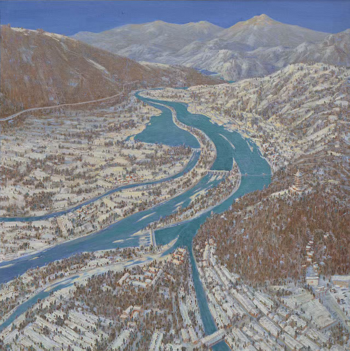 《雪润天府》作者:翟启兵 以四川都江堰的人文景观为创作背景,选取下雪后的意境,表达无数先辈浴血奋战换来今天的和谐盛世,是尤为珍贵。