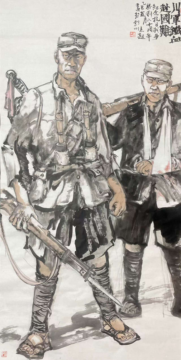 中国画《川军出川》作者:雷振刚 画面描绘的是四川抗战时期川军出川抗战的场景。