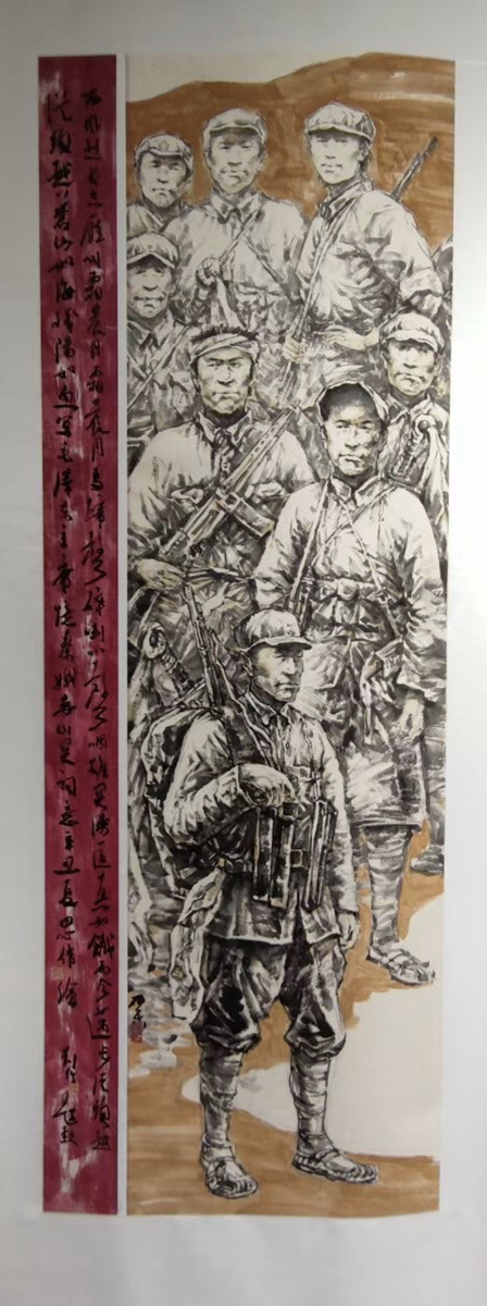 《西风烈》作者:田心伟 根据毛主席《忆秦娥娄山关》词意描绘一群红军战士行军的场景,展现了红军不畏艰险,不屈不挠的战斗意志。