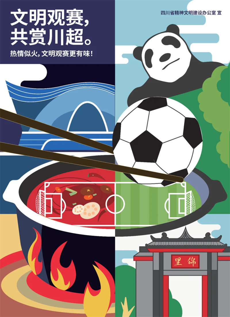 “川超”的精彩需要每一位球迷的守护,文明的赛场离不开你我的共同参与。9月29日,“文明川超 精彩有我” 系列公益广告正式上线。让我们一起用行动为“川超”添一份文明,为热爱加一分精彩。让我们带着文明去观赛,让每一场川超都成为难忘的美好回忆。