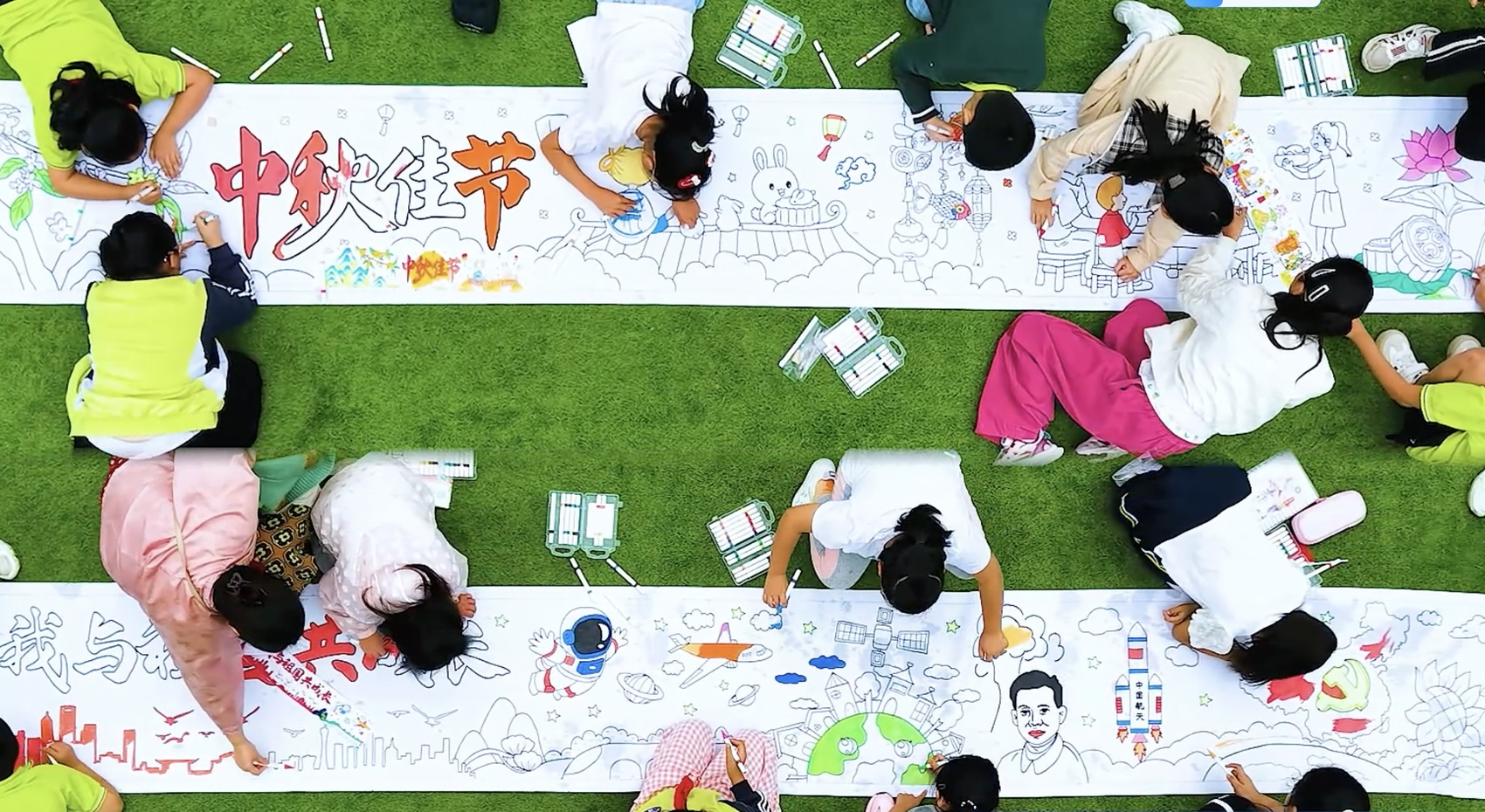 活动现场,“家园同绘·华彩篇”区域格外引人注目。一幅十米长卷画布前,孩子们俯身挥洒色彩,以童心描绘家国愿景。
