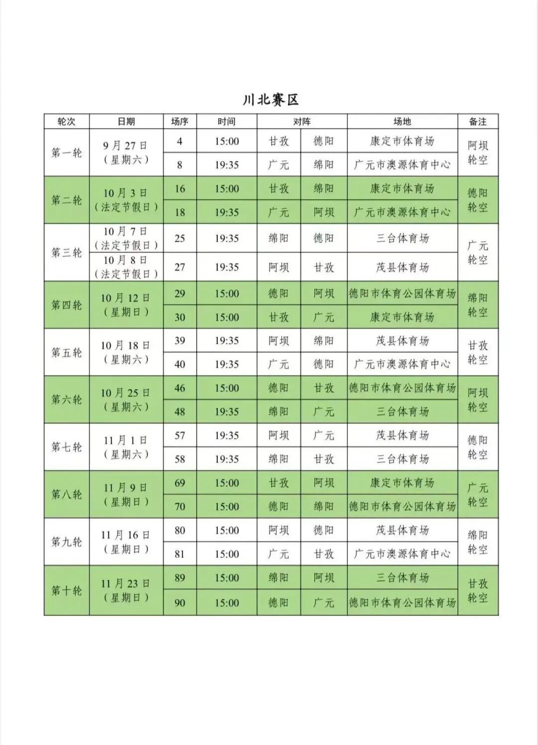 随着国庆中秋“双节”假期在10月1日拉开序幕,2025/2026四川省城市足球联赛(“川超”)也将在此期间展开两轮争夺,四个赛区6天时间一共将为广大球迷献上18场精彩对决。同时,全省21个市州还将针对“川超”赛事,配套文旅活动,邀请大家到四川看球赛、赏美景、品美食。