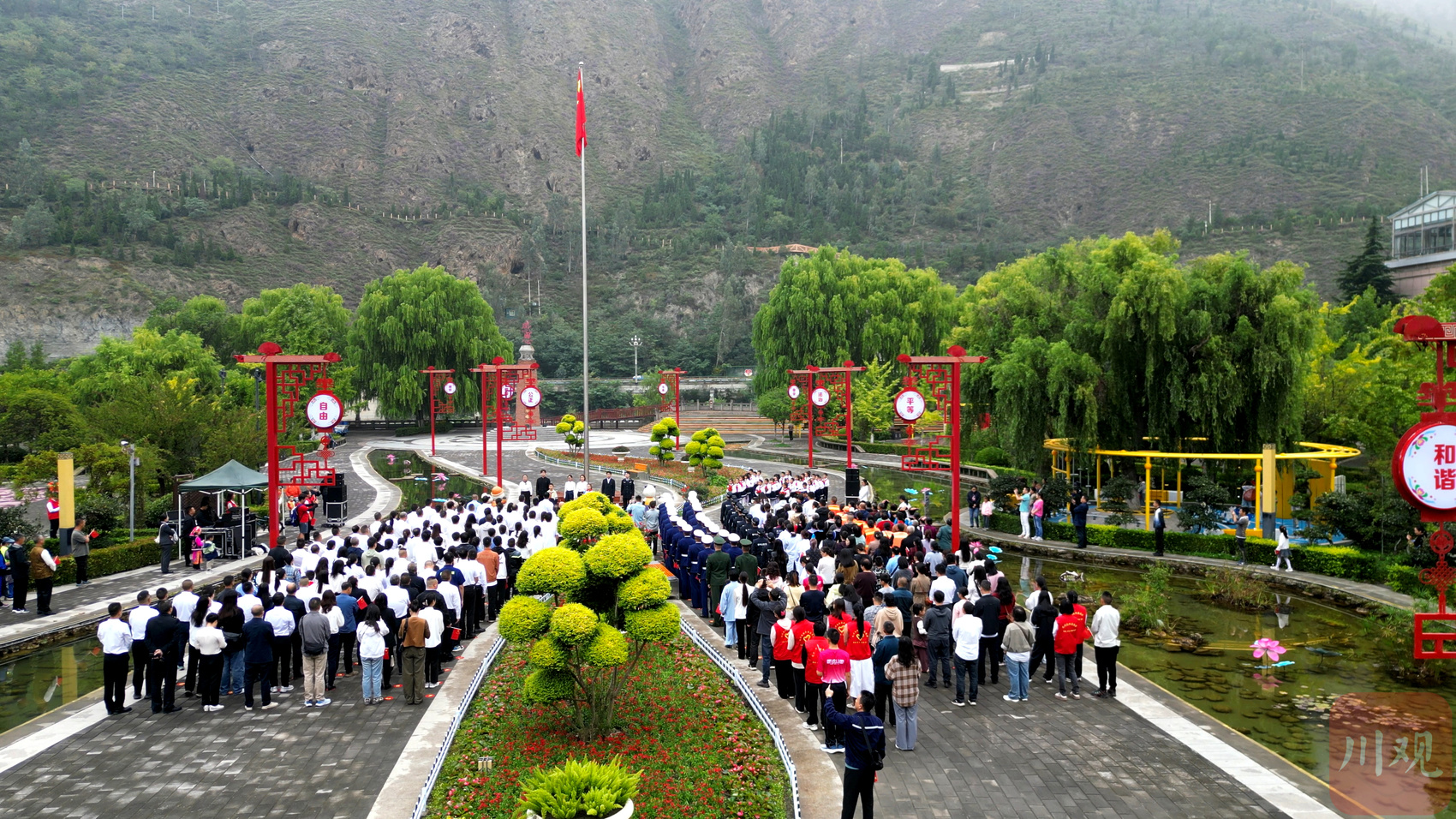 10月1日上午9时,汶川县在新时代文明实践广场举行“石榴同心庆华诞·‘强国有我’共奋进”升国旗仪式暨国旗下的演讲活动,庆祝新中国成立76周年。