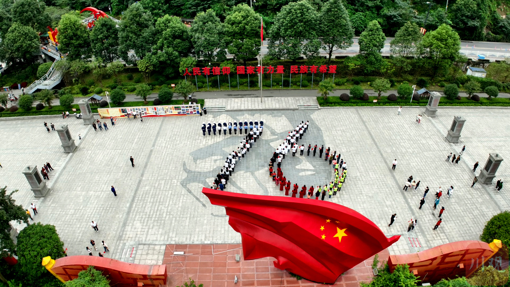 汶川县在位于县城的新时代文明实践广场,举行“石榴同心庆华诞·‘强国有我’共奋进”升国旗仪式暨国旗下的演讲活动。