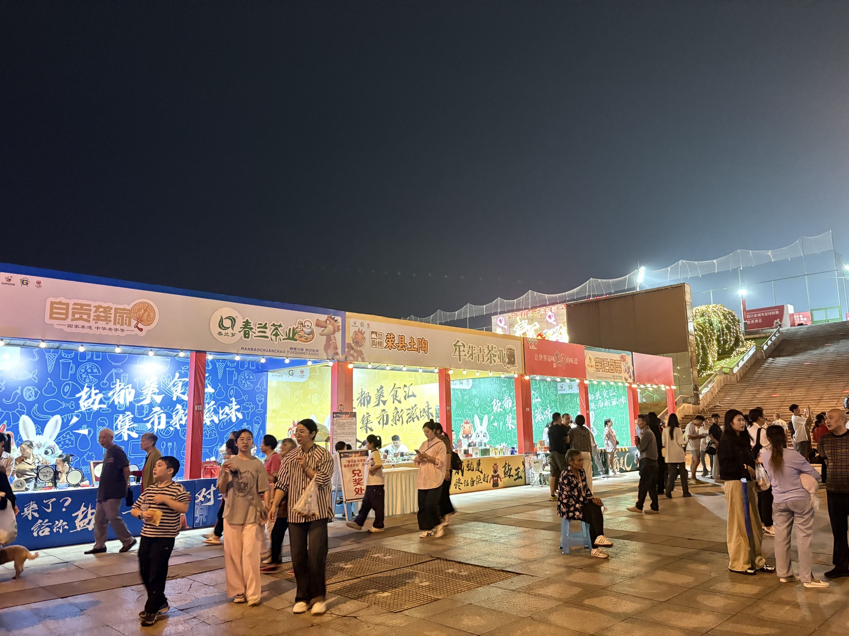 内江的展区也拿出了满满的诚意。工作人员向前来观赛的自贡市民和外地球迷,详细介绍内江的双节福利:凭今晚的川超票根,到资中状元集市能免费品鉴山椒兔,去石板河景区露营可免部分装备租赁费。而在内江城区,吾悦广场“玩味甜城GO享双节”活动早已开启,本土特色产品、非遗手作展销让商场人气爆棚,形成“赛场热、商圈火”的联动效应。