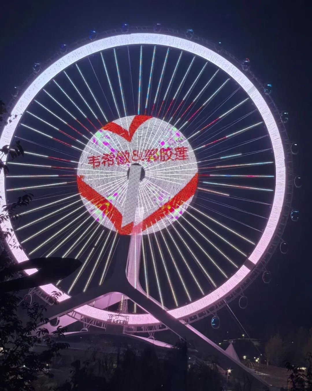 10月1日晚,成都世博园的摩天轮变身浪漫“告白墙”。