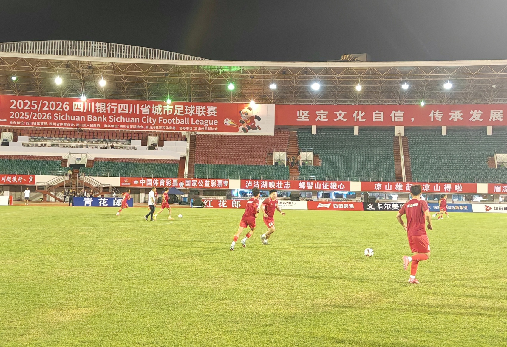 作为川超凉山好医生队首次主场比赛,此次赛事备受凉山人关注。当天,记者在比赛场馆——凉山民族体育馆看到,相关工作已准备就绪,双方队员正在进行训练。“眉凉聚首相见欢 川超赛场友谊牵”、“泸沽湖映壮志 螺髻山证雄心”“为凉山荣誉而战”等标语颇为醒目。