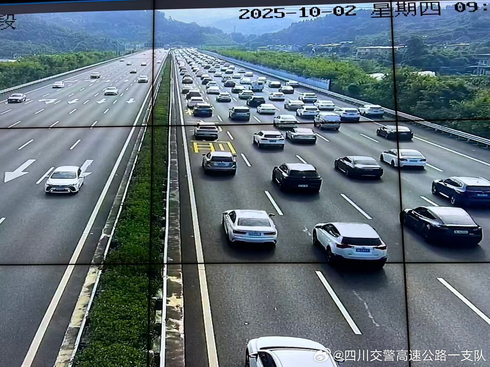 10月2日是国庆中秋假期第二天,记者从四川高速公安一分局获悉,截至上午9时55分,成都周边高速部分路段车流量大出现排行情况,主要集中在以下路段: