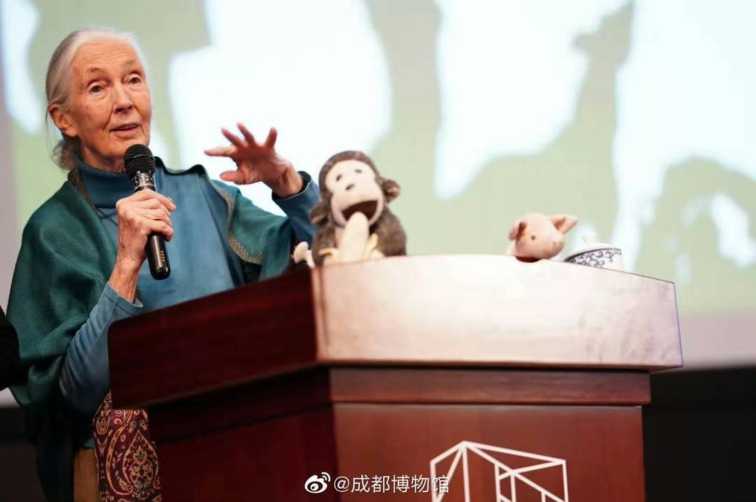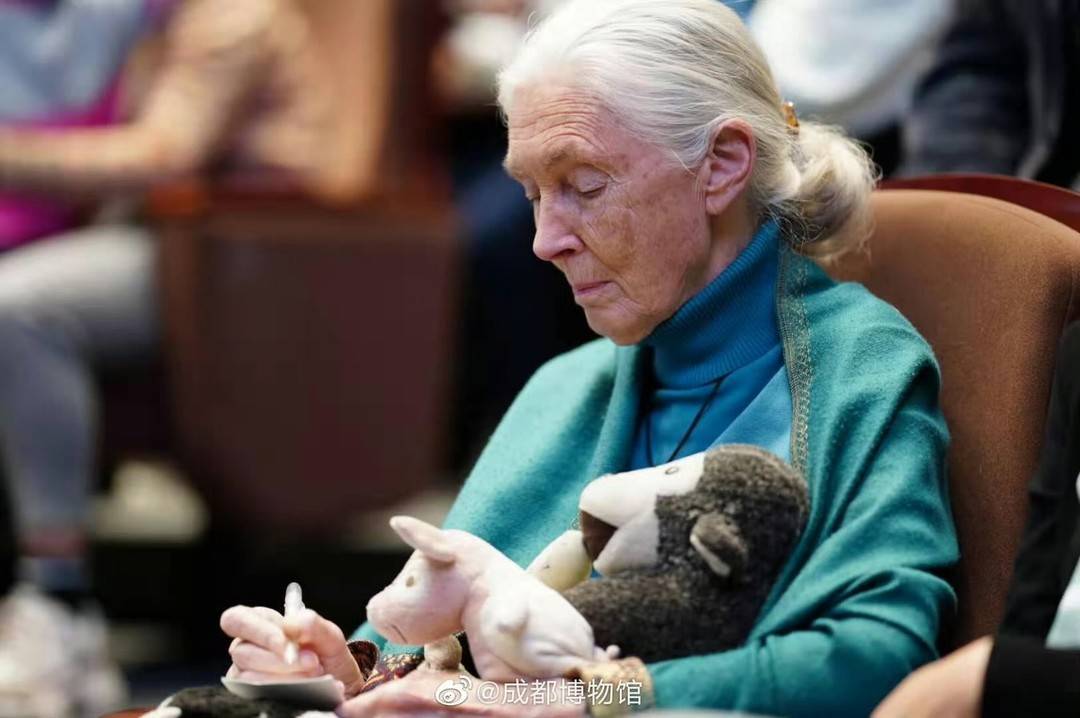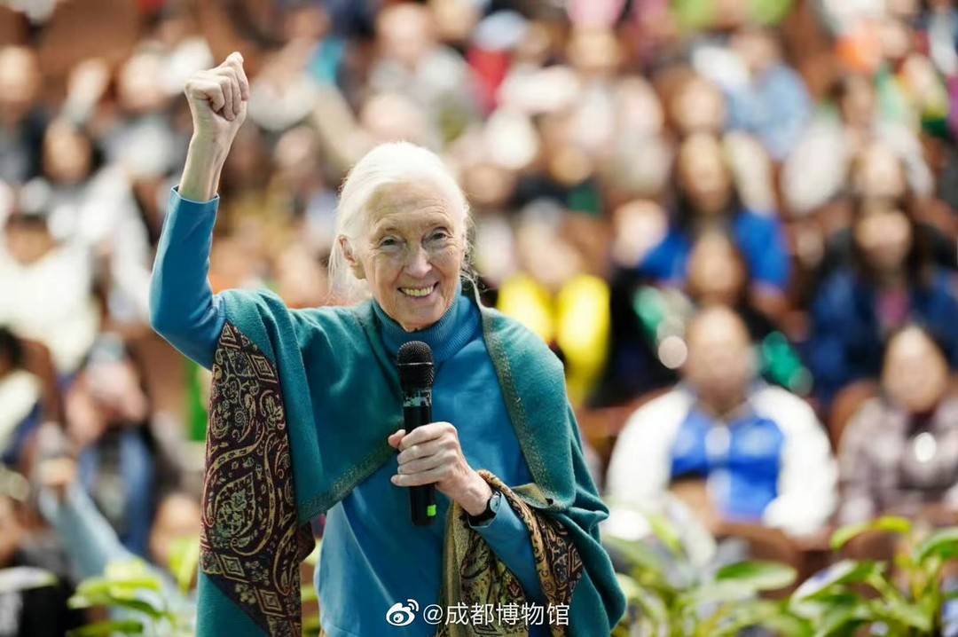 作为多次出现在科学、生物、英语教科书上的人物,珍·古道尔长期致力于黑猩猩的野外研究,是首位在坦桑尼亚观察到黑猩猩行为与人类相似的科学家。60多年前,珍·古道尔深入非洲丛林研究黑猩猩,改写了“人类”的定义。而在年暮时,她仍保持对动物的热爱,奔走于各地举办讲座,身体力行呼吁环保。其中,在2019年11月,珍·古道尔曾来到四川,在成都博物馆以《人与自然:和谐与未来》为题,从儿时的经历入手,与观众分享她如何走向非洲观察大猩猩,以及对人与自然关系的理解。