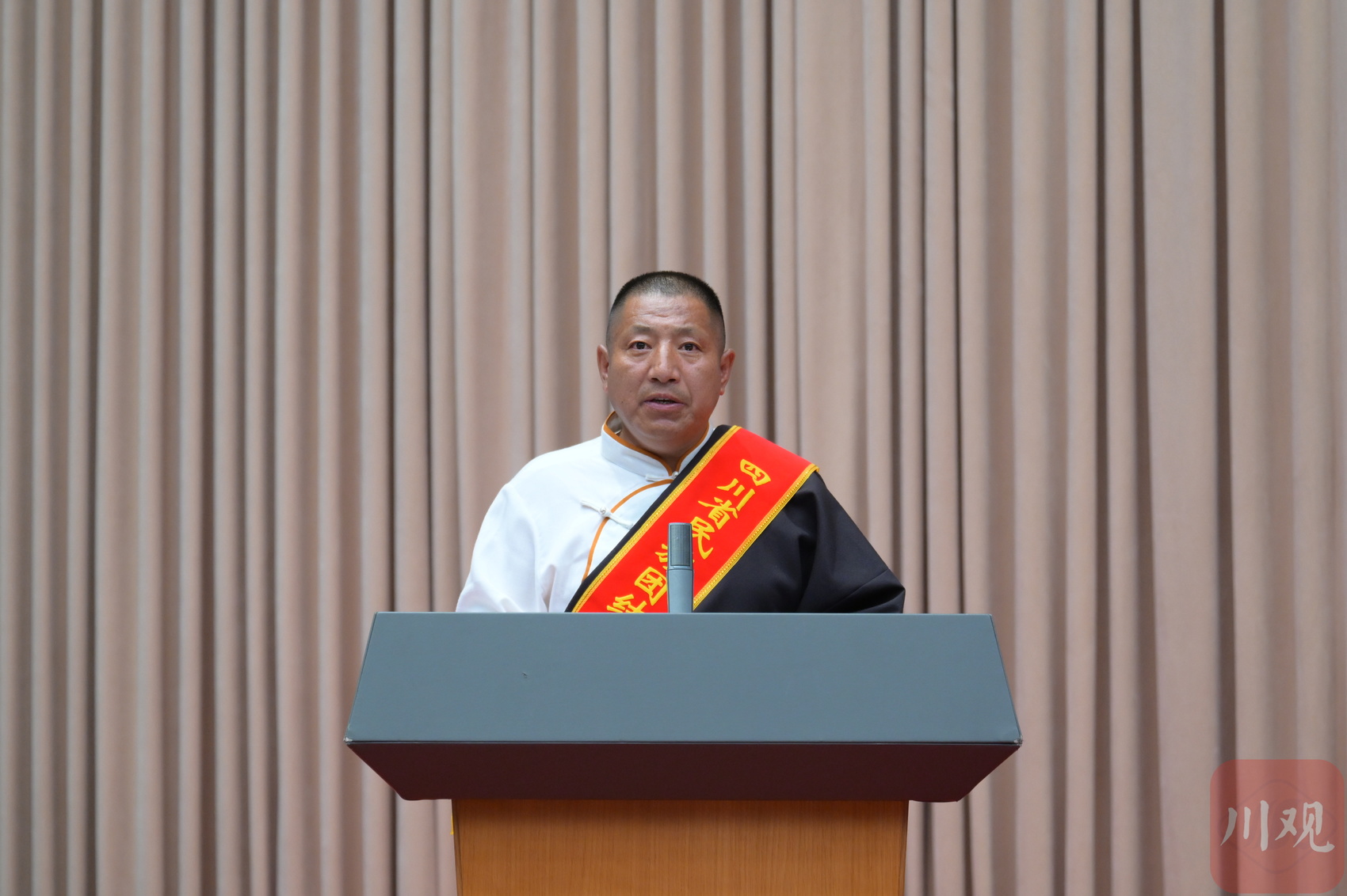 阿坝州理县米亚罗镇吉柯村党支部书记、村委会主任耿章,作为四川省民族团结进步模范集体代表在会上作交流发言。