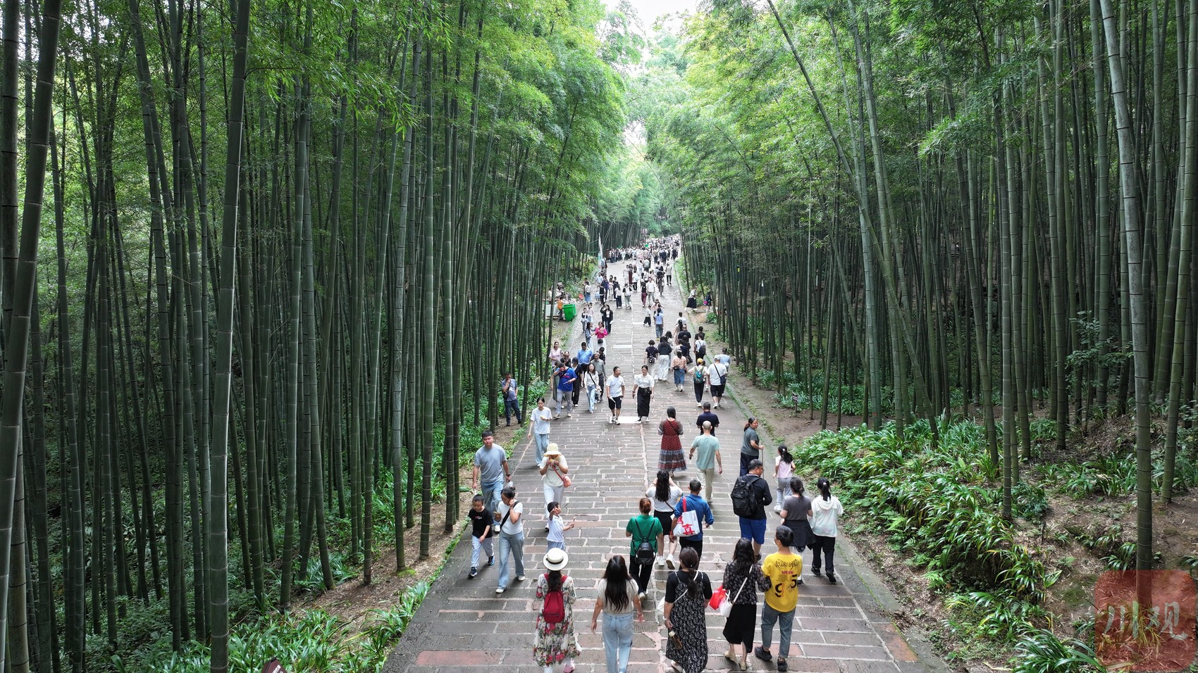 10月2日,宜宾市长宁县蜀南竹海景区迎来出游高峰,徜徉竹海,游客们或在竹林深处邂逅国宝大熊猫,或漫步翡翠长廊、泛舟海中海,感受万顷竹海的青翠与清幽,尽享假日休闲与惬意。