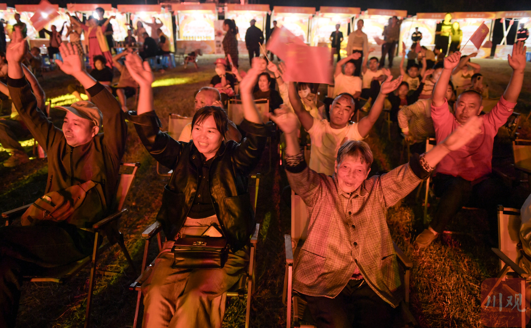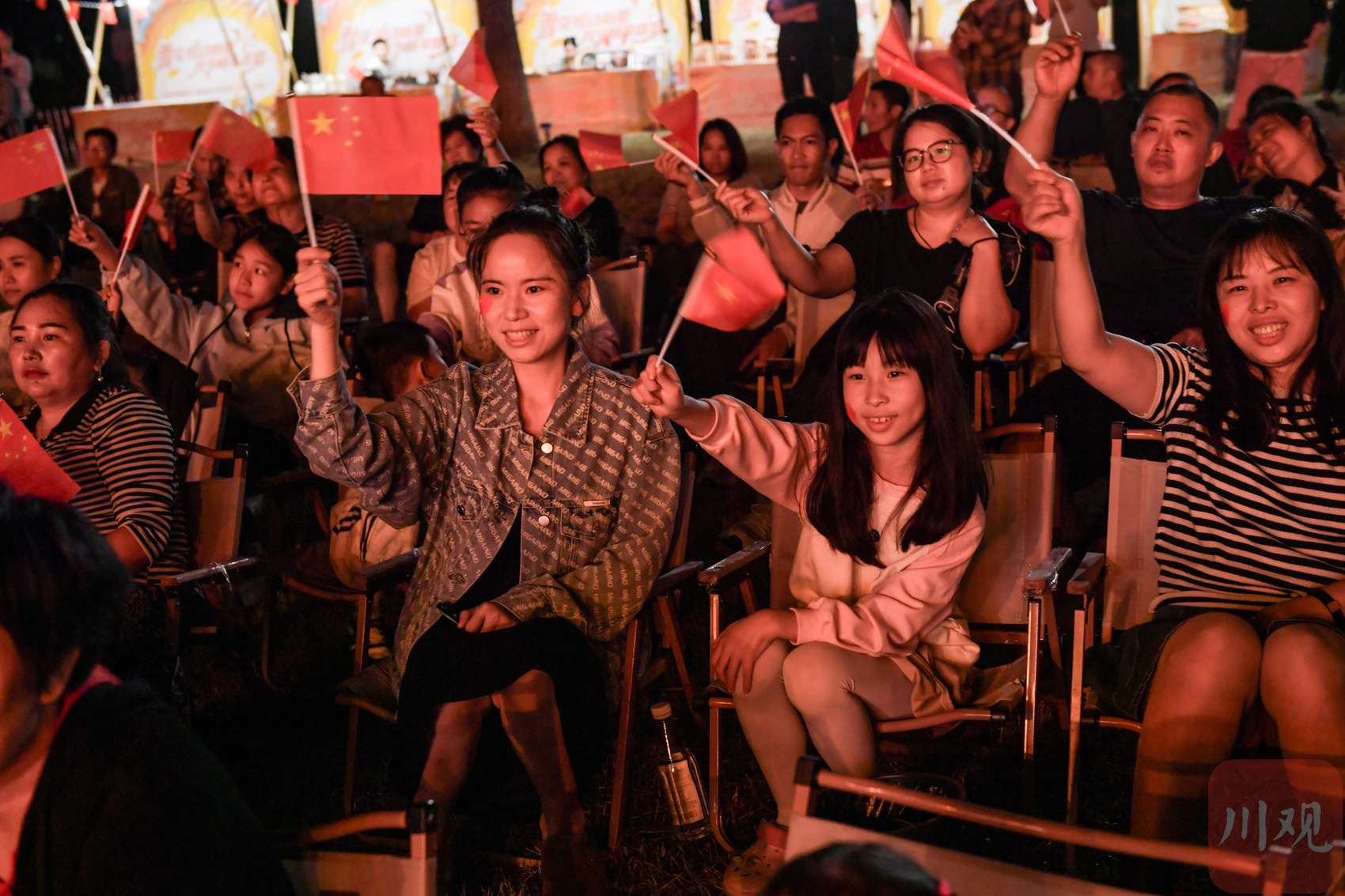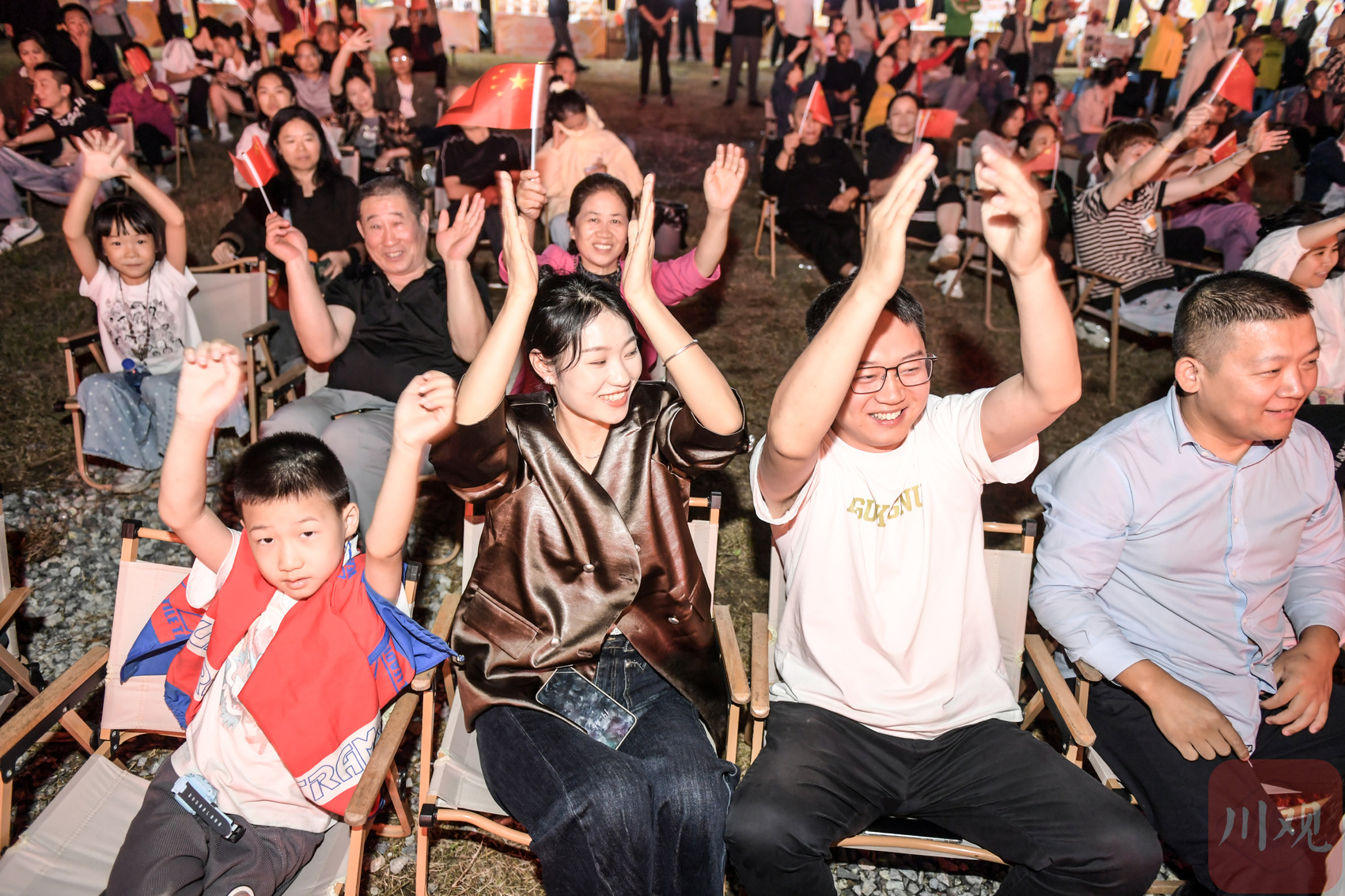 2025年10月1日晚,在成都新都高新技术产业园区沐光森林营地,游客在“成都新都区第二届银杏林下音乐嘉年华”活动中看“川味”节目演出。