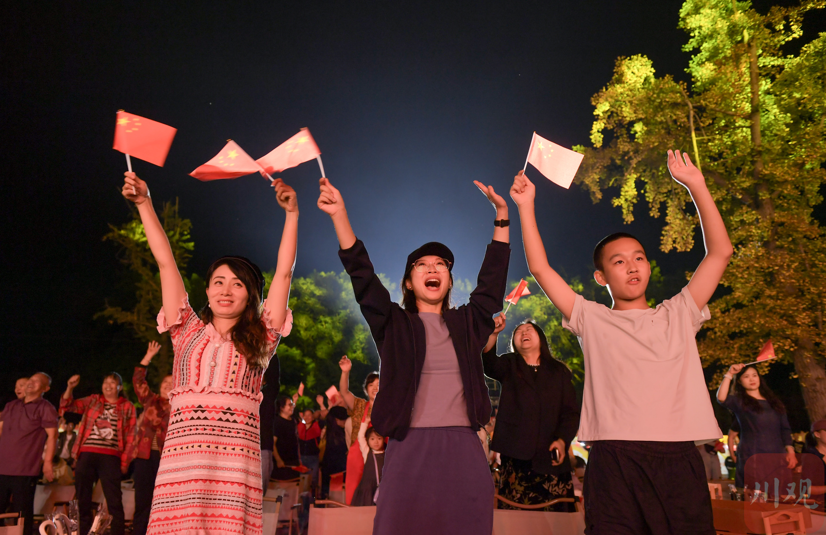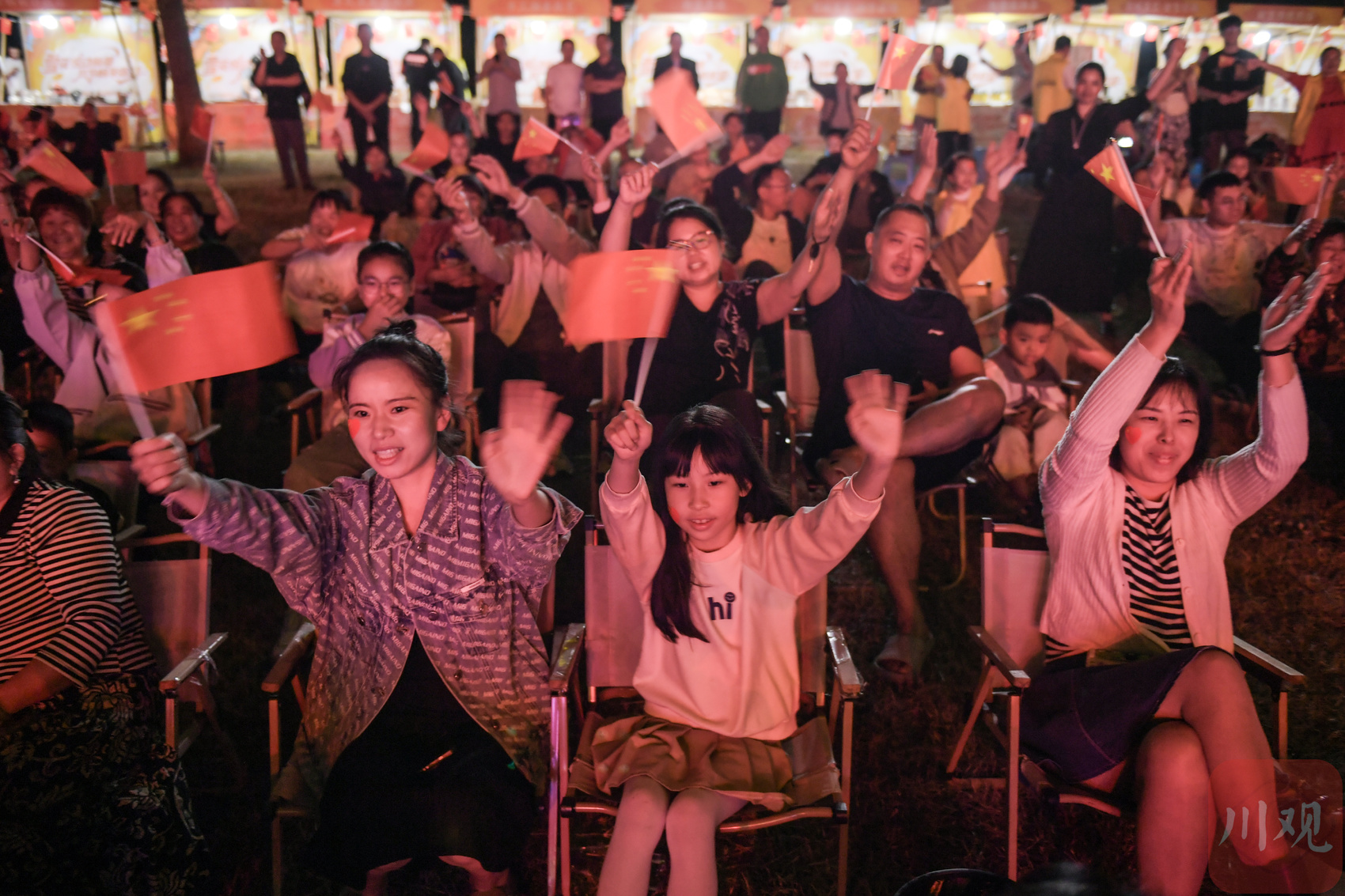 10月1日晚,成都新都高新技术产业园区的沐光森林营地灯火璀璨,银杏与桂树交织,勾勒出“林中有景、景中有灯”的唯美画卷。众多游客徜徉其间,看“川味大戏”、品30多种四川美食,感受国庆、中秋“双节”的喜庆氛围。