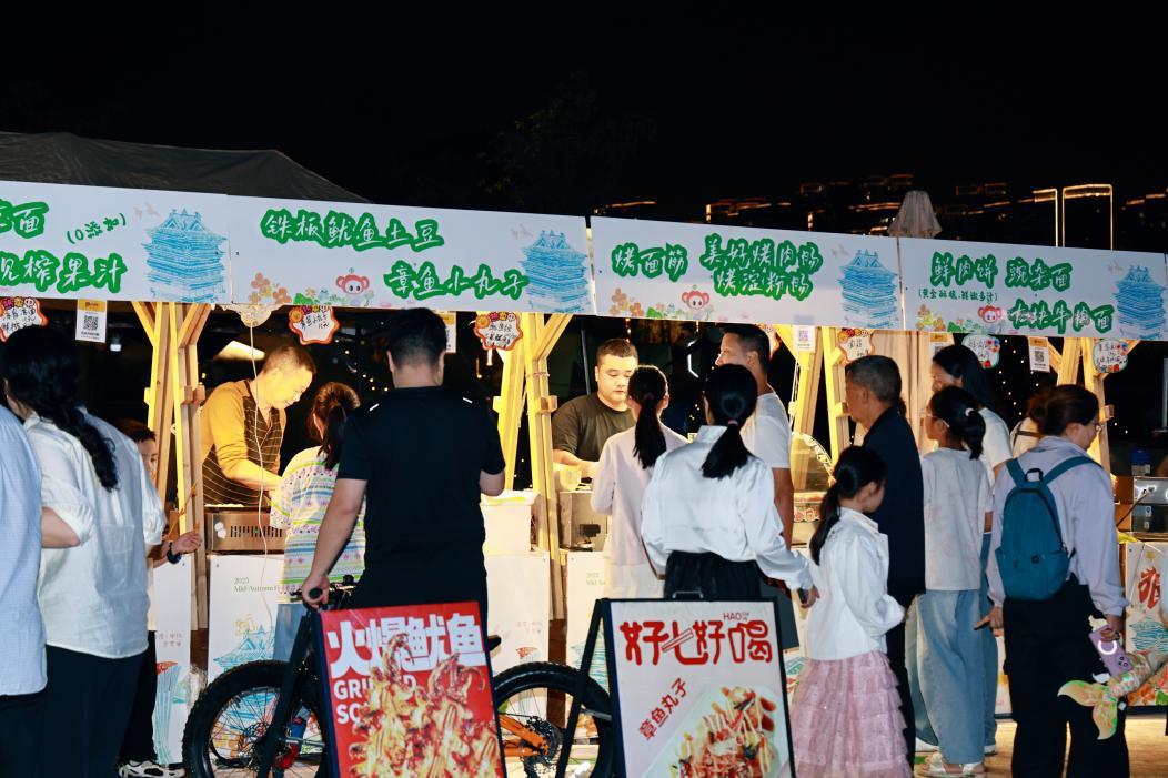 作为主会场之一的书香广场,东西两大集市热闹非凡。东集市成为美食爱好者的天堂,川渝麻辣烧烤滋滋作响、各地特色小吃香气扑鼻、创意特调饮品琳琅满目。西集市则是一场文化与创意的邂逅,独立设计师的文创摊位前,独具匠心的手工艺品吸引着年轻游客的目光;汉服妆造区则有化妆师等候,巧手勾勒中,让体验者梦回千年。