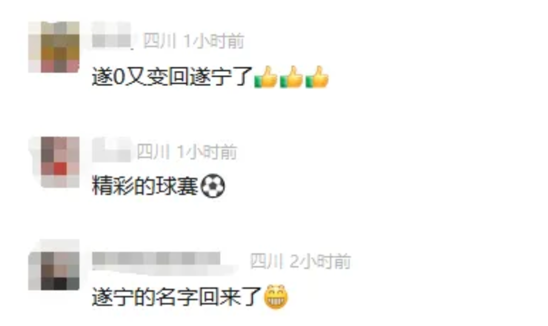 遂宁在这场比赛中也获得1个积分,赛后网友评论“遂0”又变回“遂宁”了。