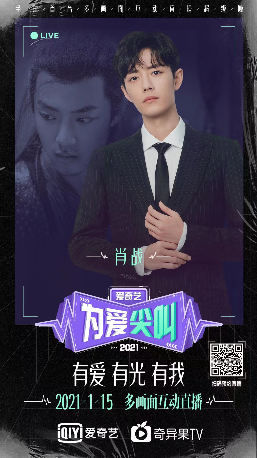 2021爱奇艺为爱尖叫晚会,以“有爱,有光,有我”为主题,汇聚了蔡徐坤、肖战、谭松韵、张靓颖、任嘉伦、周笔畅、张碧晨、五条人、马东、金晨、贾玲、周延、陈伟霆等众多表演嘉宾,在新一年,传递爱与光,也传递自我的力量。