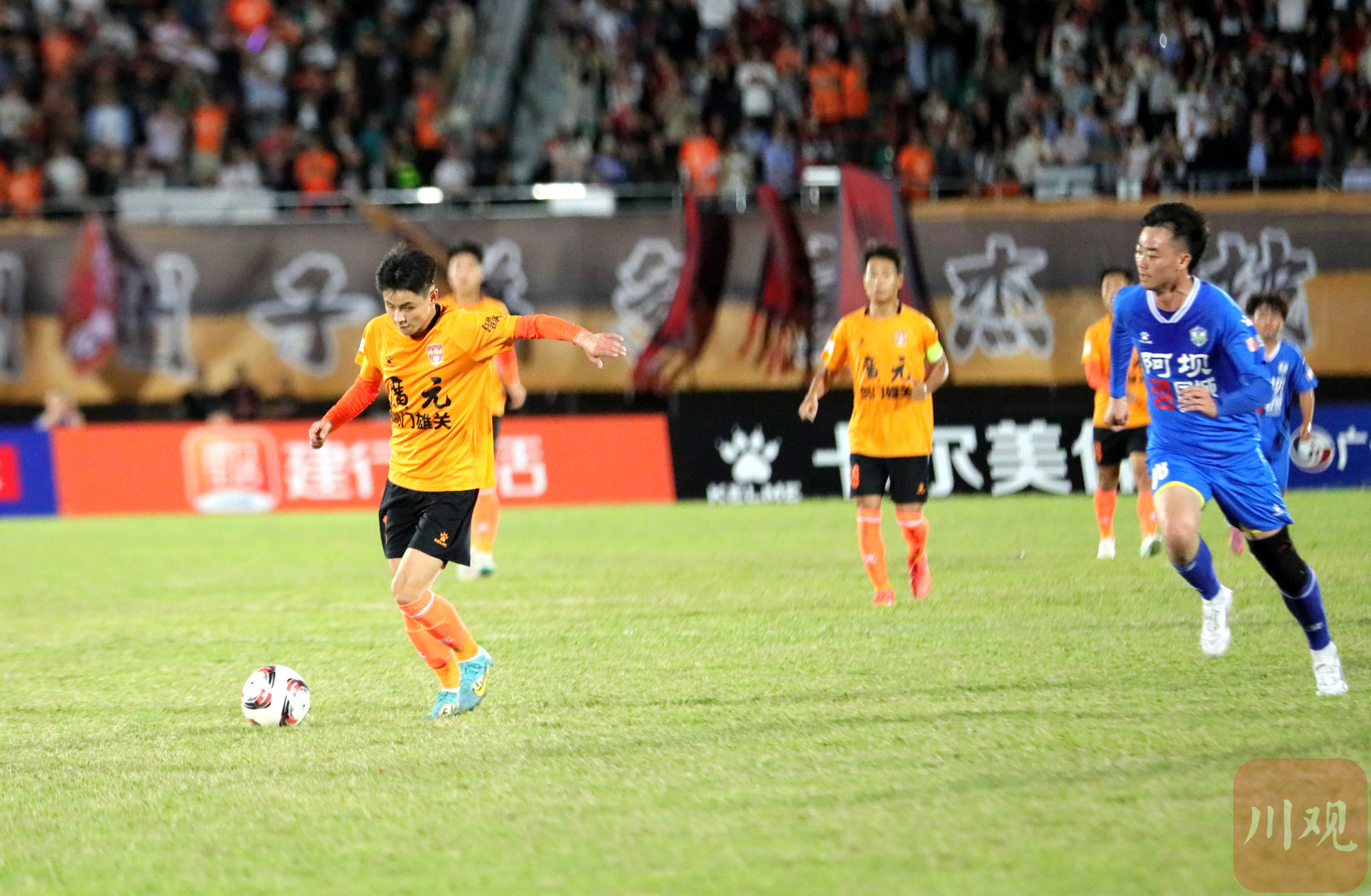 下半场双方争抢愈发激烈。刚开场2分钟,阿坝队发起进攻,11号泽瓦里罗利用广元队防守失误,攻入扳平一球。这也是“川超”比赛上,阿坝州攻入的第一粒进球。
