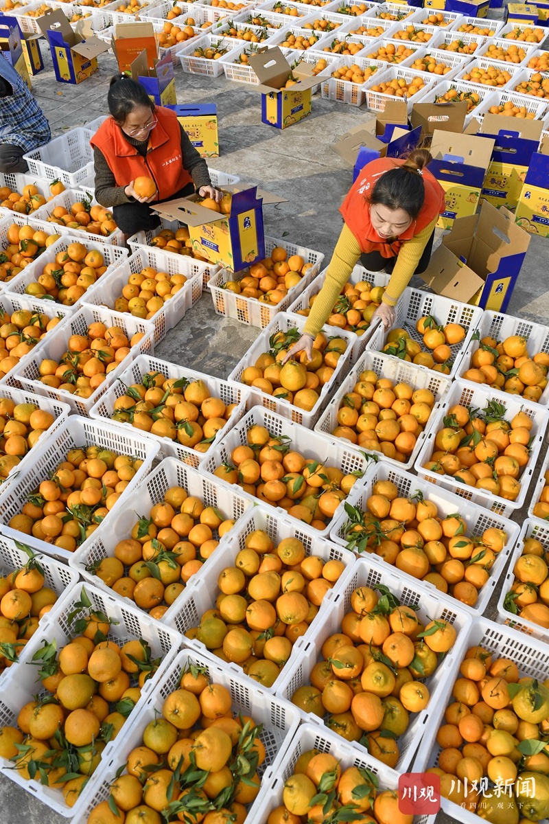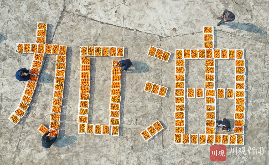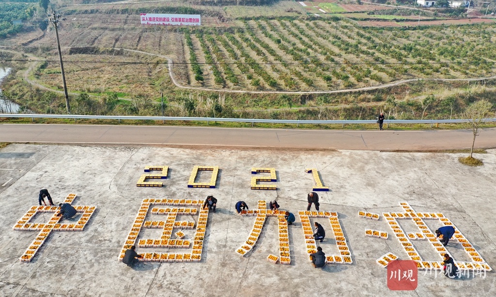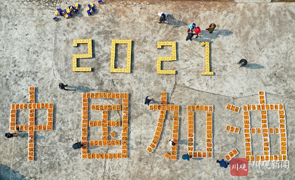 为庆祝柑橘丰收,村民用一筐筐柑橘拼出了“2021 中国加油”的字样,以表达丰收的喜悦和对祖国的美好祝福。据嘉陵区一立镇党委书记苟安琪介绍,近年来,该镇按照“土地流转、业主带动、规模长效、致富百姓”的思路,采取“专合组织+基地+农户”的模式,通过业主、大户的带动,已规模种植春见、沃柑、砂糖橘等优质柑橘(柠檬)近万亩,达产面积7000多亩,并通过土地流转、承包返租、入股分红、劳务收入等方式,带动该镇3000多户农户走上了增收致富路。