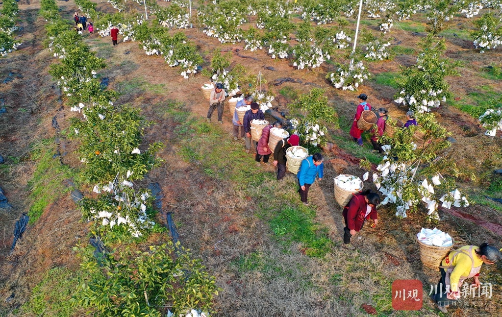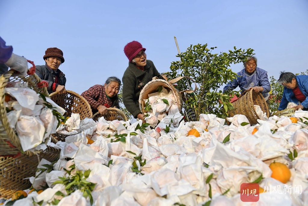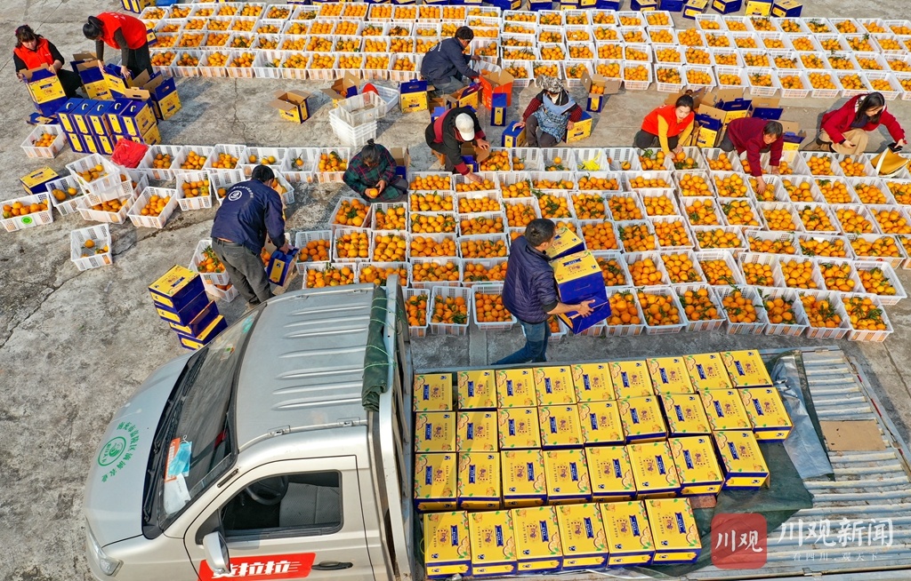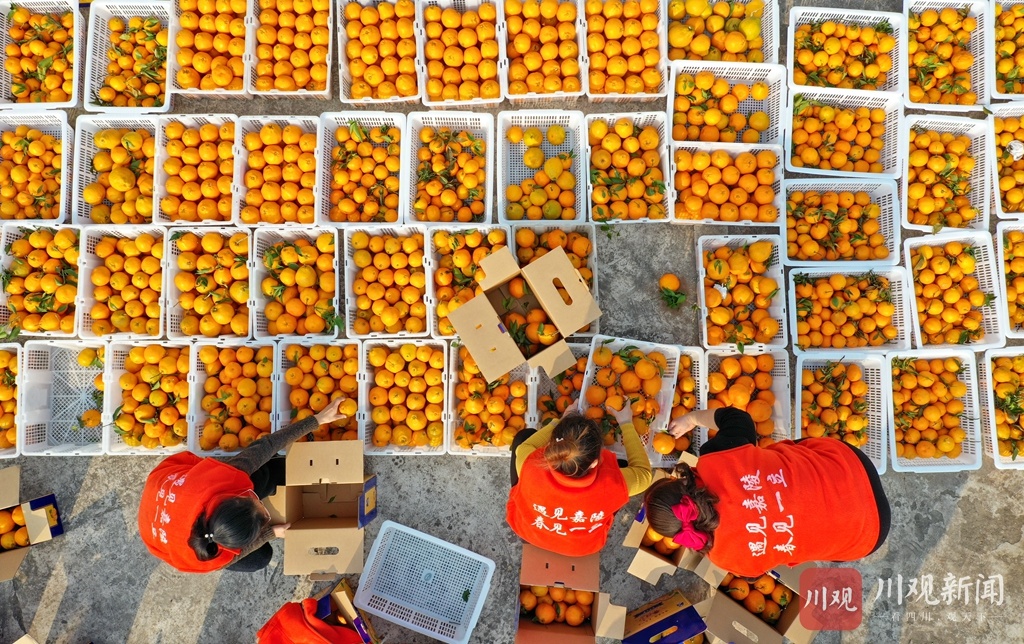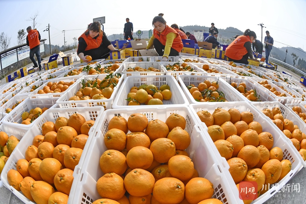 为庆祝柑橘丰收,村民用一筐筐柑橘拼出了“2021 中国加油”的字样,以表达丰收的喜悦和对祖国的美好祝福。据嘉陵区一立镇党委书记苟安琪介绍,近年来,该镇按照“土地流转、业主带动、规模长效、致富百姓”的思路,采取“专合组织+基地+农户”的模式,通过业主、大户的带动,已规模种植春见、沃柑、砂糖橘等优质柑橘(柠檬)近万亩,达产面积7000多亩,并通过土地流转、承包返租、入股分红、劳务收入等方式,带动该镇3000多户农户走上了增收致富路。