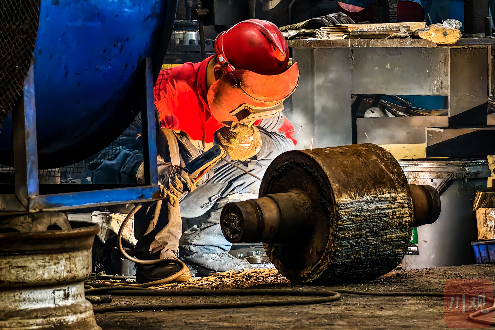 10月3日,泸州市合江县循环经济产业园区内的鑫阳钢铁有限公司,工人坚守生产一线,全力冲刺全年目标任务。(C视觉签约摄影师/李贵平)