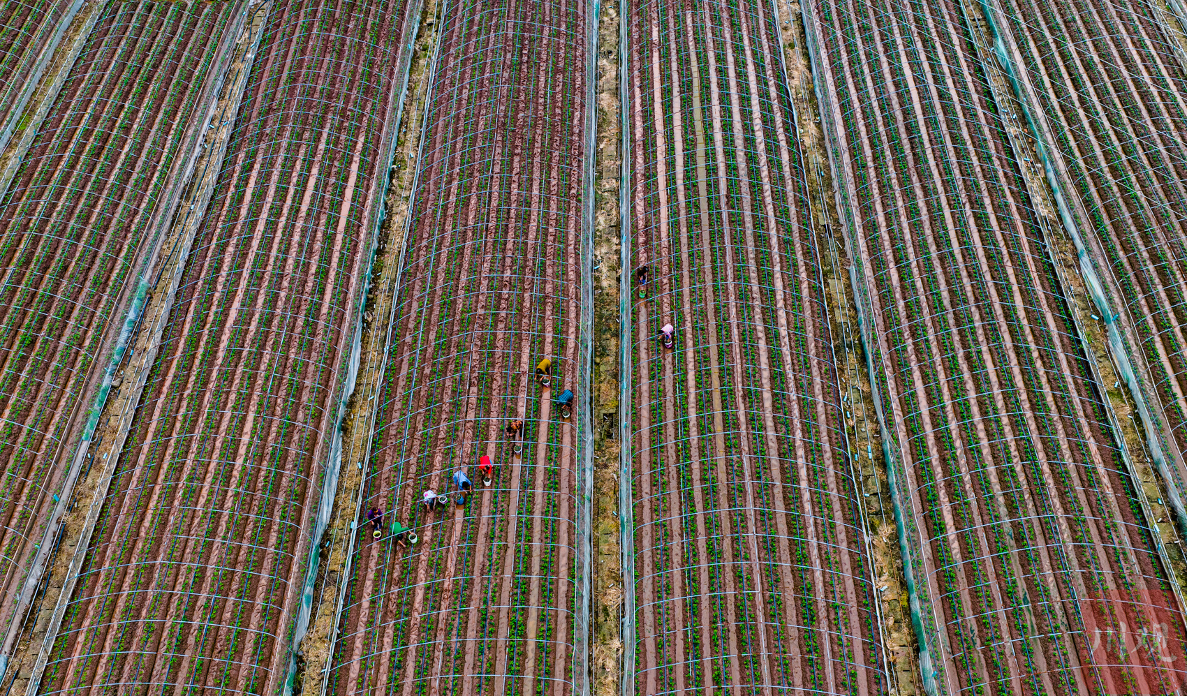 10月2日,达州市通川区磐石镇舒适农庄园组织村民管理大棚内的冬草莓。(C视觉签约摄影师/王梦)