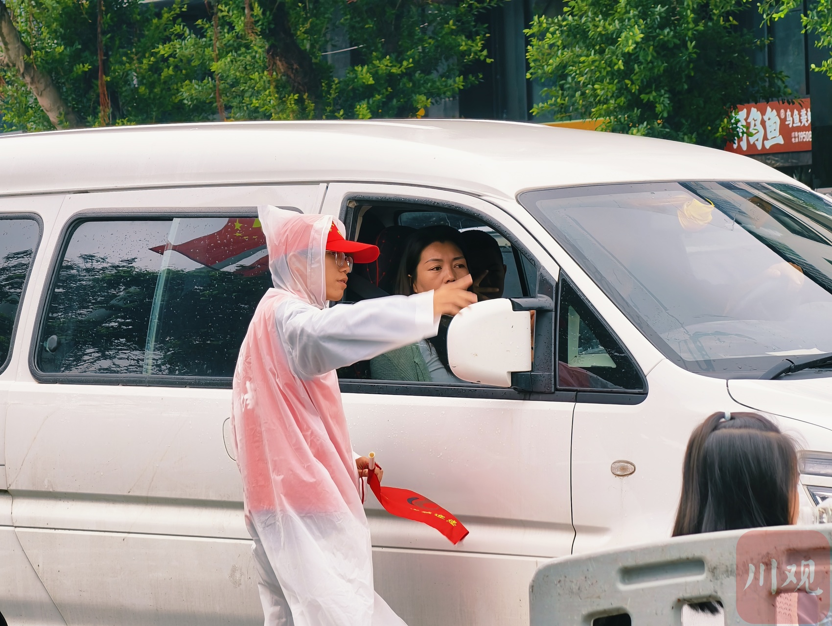 10 月 4 日上午,阆中市志愿者在道路沿线为游客服务。(C视觉签约摄影师/张晓东)