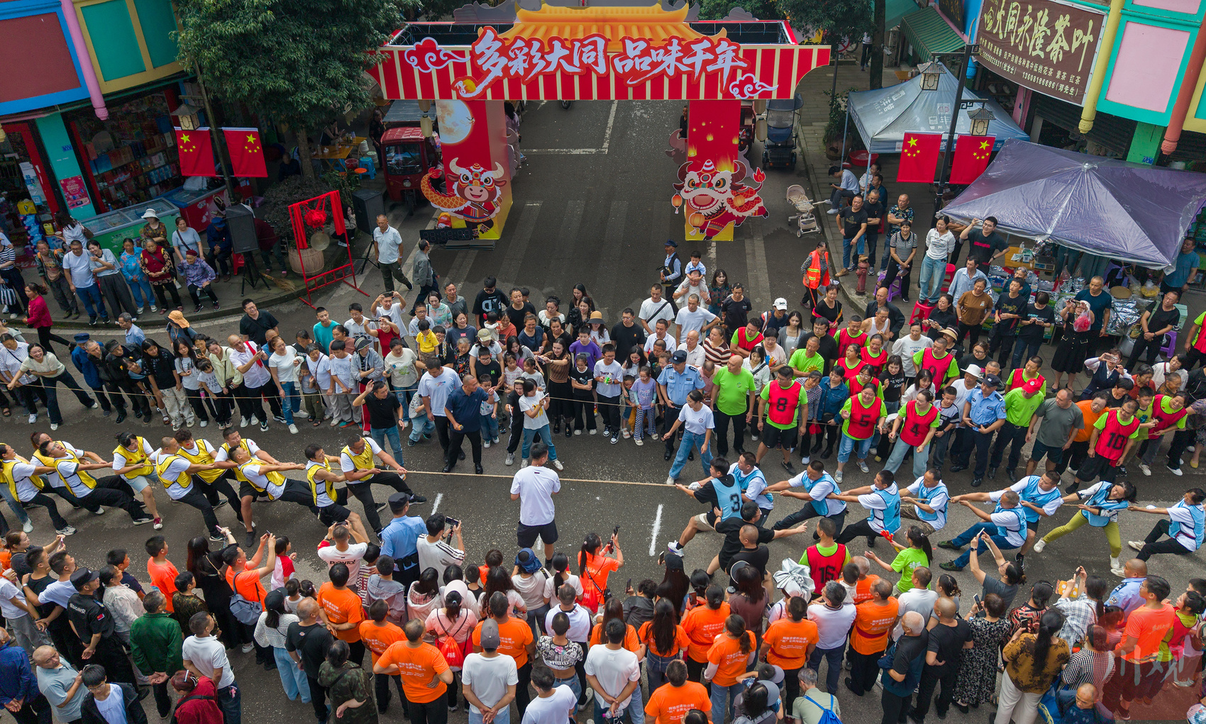 国庆假期期间,邛崃市大同镇以拔河赛事庆双节,各村组踊跃参与竞技,热闹非凡。(C视觉签约摄影师 袁凤 摄)