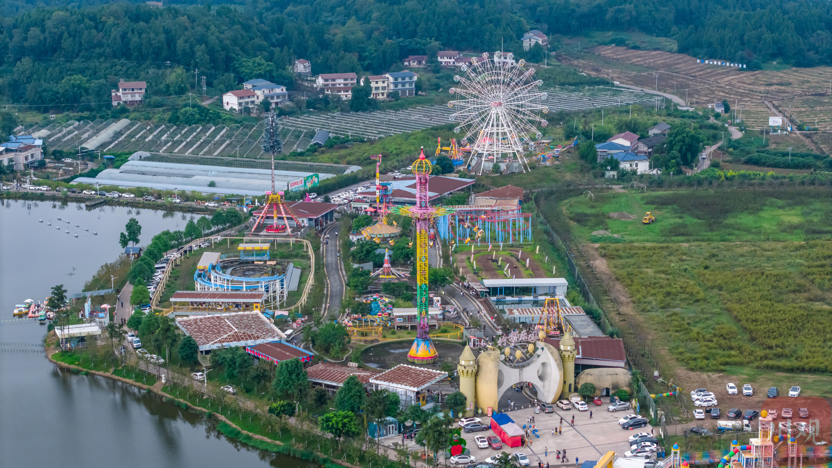 10月4日,在资阳市安岳县文化镇燕桥村宝森农林旅游区,乡村游乐园里车流如织,游客在此惬意欢度假日。(C视觉签约摄影师 杨康忠 摄)