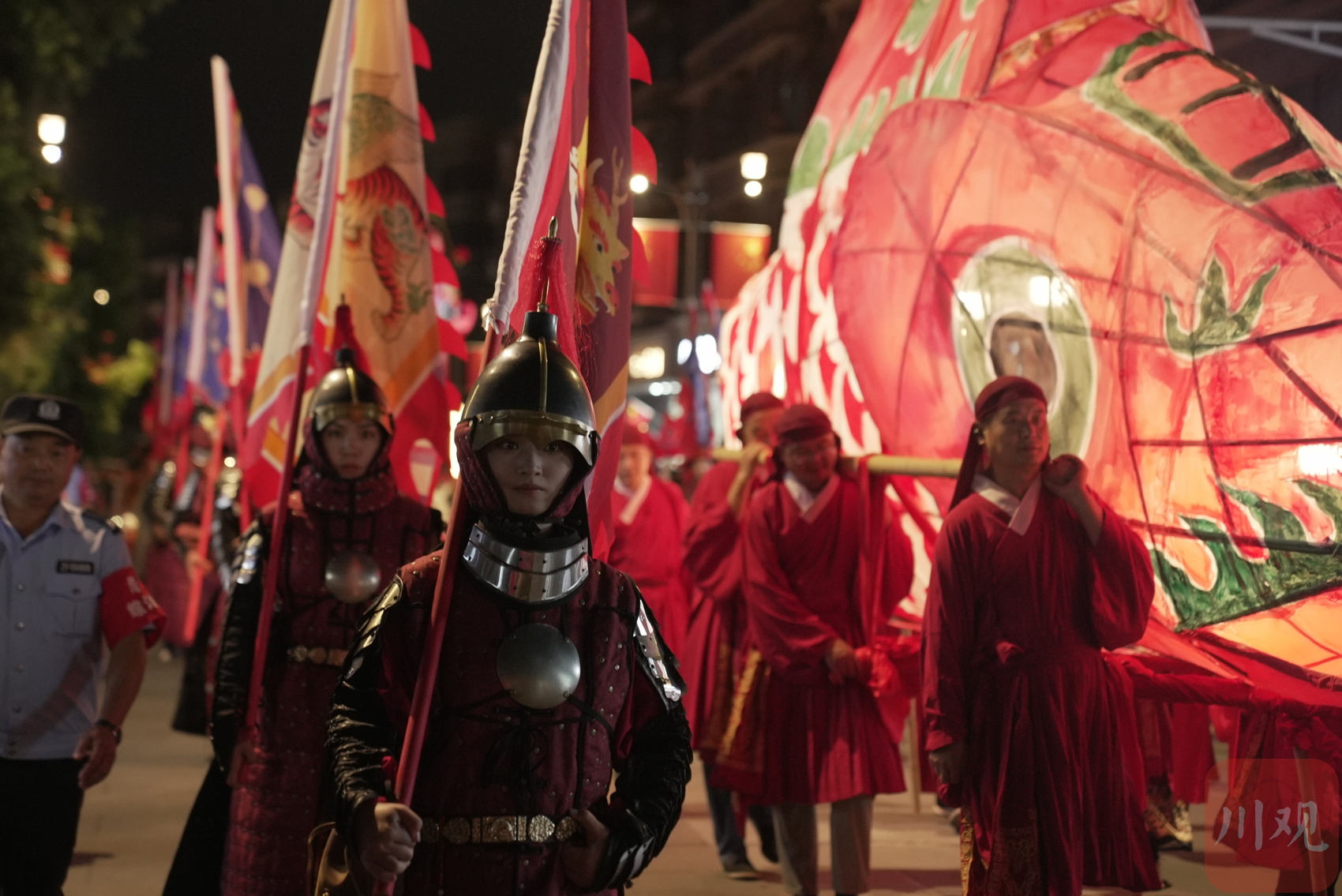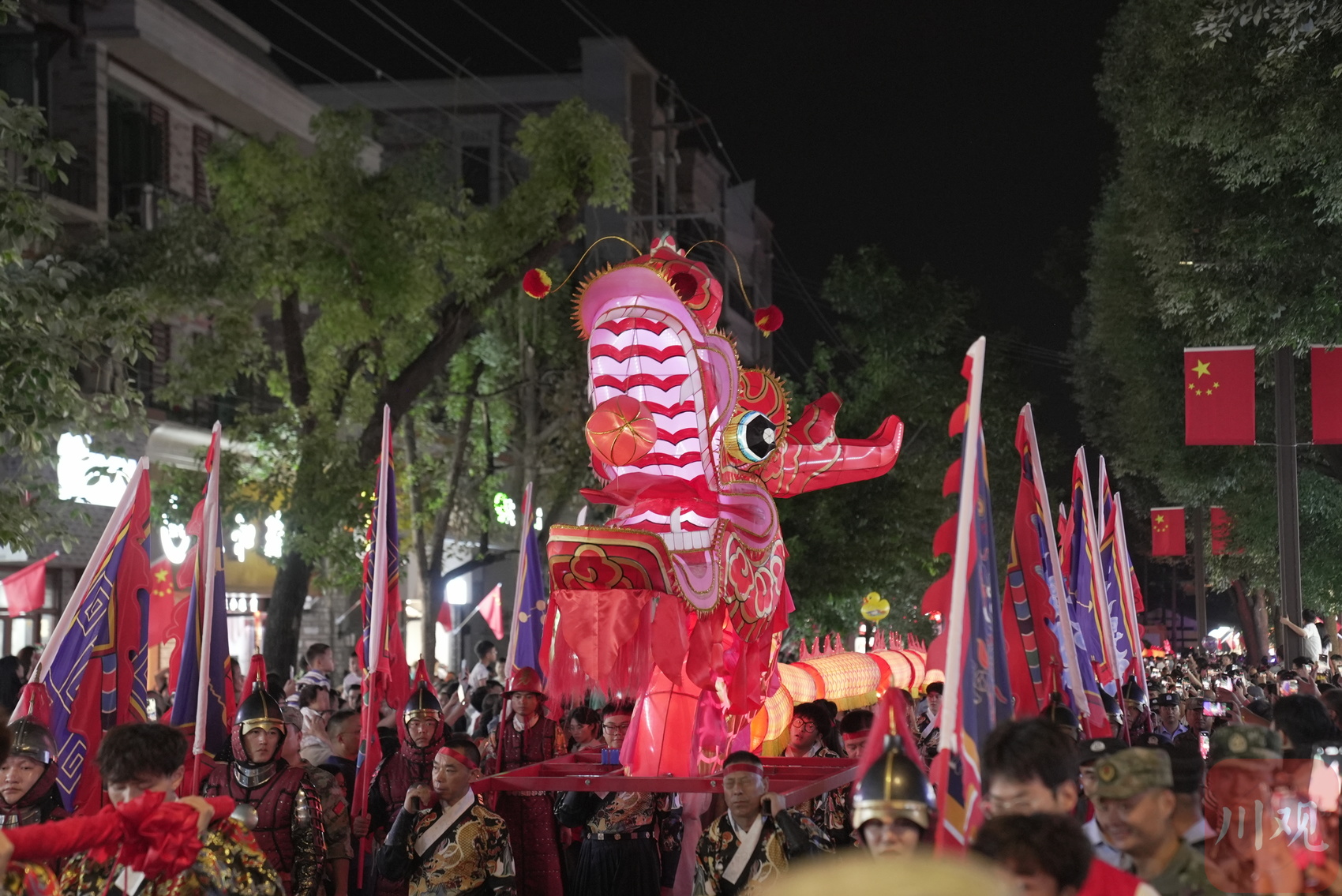 巨型非遗鱼灯与甲胄护龙队。