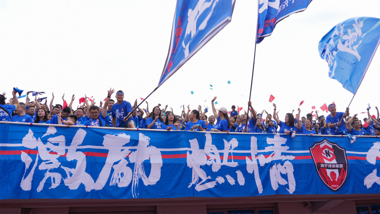 10月2日,主场作战的遂宁舍得干队与巴中红叶队以2:2握手言和。图为球迷为主队加油。