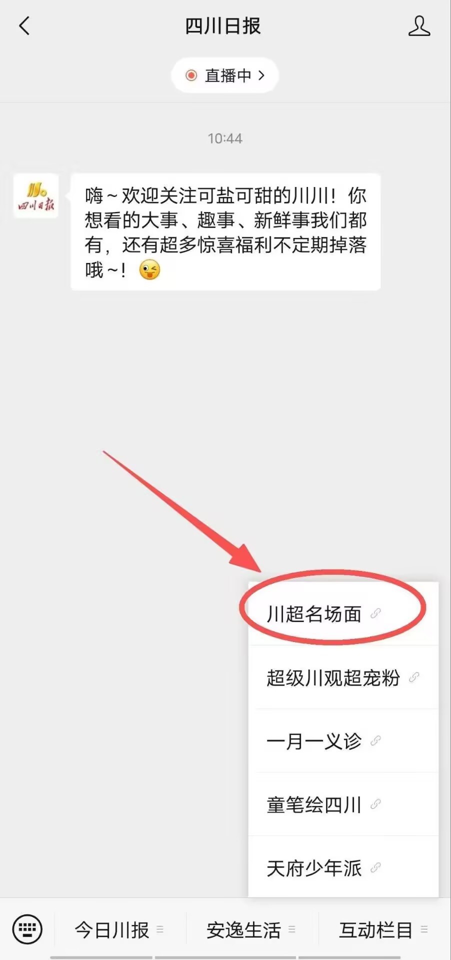 入口四:关注“天府新视界”微信公众号,对话框私信回复【川超斗图】,即可获取活动链接点击参与。