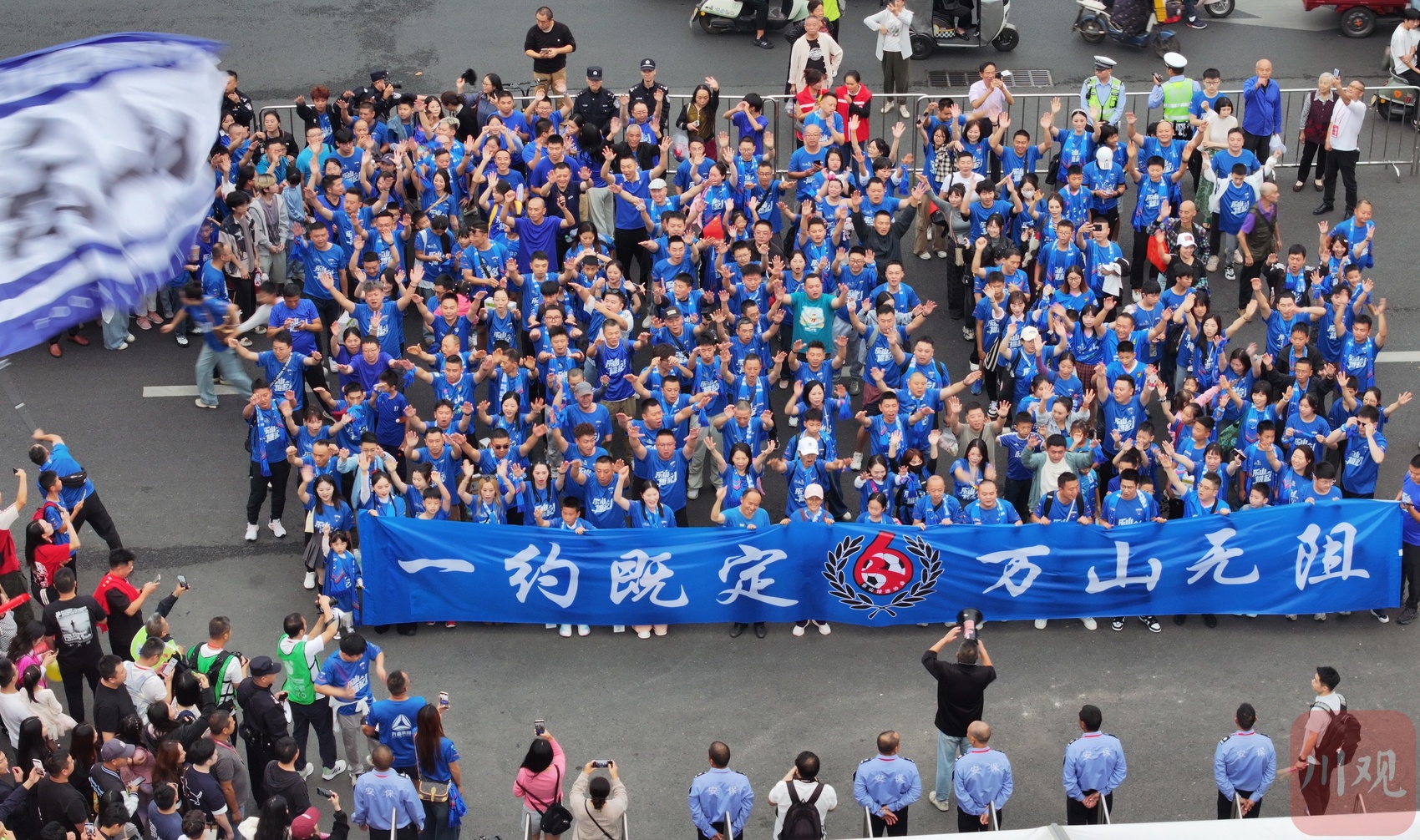 2025年10月6日,来自乐山的啦啦队在场外摇旗助威。(C视觉签约摄影师 潘建勇 摄)