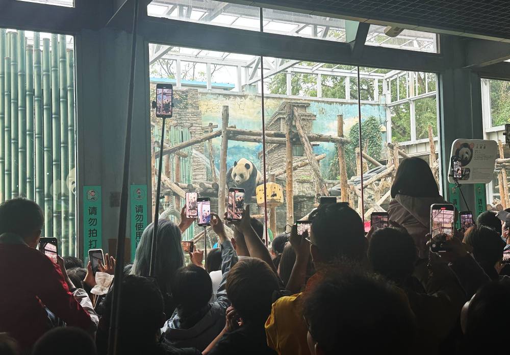 10月6日,游客在北京动物园观赏大熊猫。新华社记者 杨淑君 摄