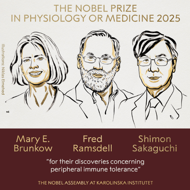 ▷当地时间10月6日,瑞典卡罗琳医学院宣布,将2025年诺贝尔生理学或医学奖授予科学家玛丽·E·布伦科、弗雷德·拉姆斯德尔和坂口志文,表彰他们在外周免疫耐受方面的研究贡献。详情>>