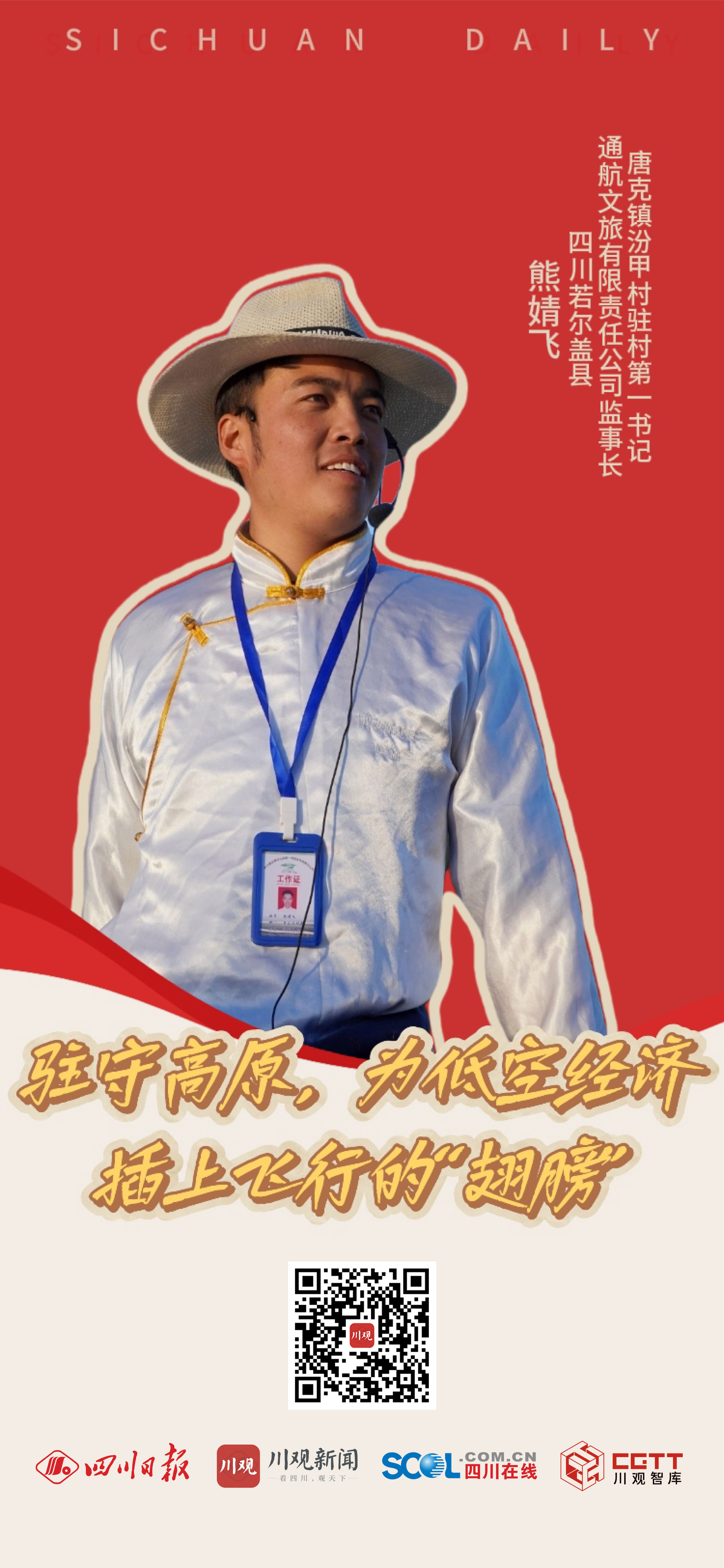 怀揣着对大自然的向往,熊婧飞从金川县的高山深谷中来到辽阔的若尔盖大草原已经13年。而他也在用青春行动践行扎根高原山川的初心,“回望过去,我终于读懂了青春这首诗。它的开头是向往,诗行是扎根与磨砺,而最新、最激昂的一页,注定由低空飞行的轰鸣声写就。”